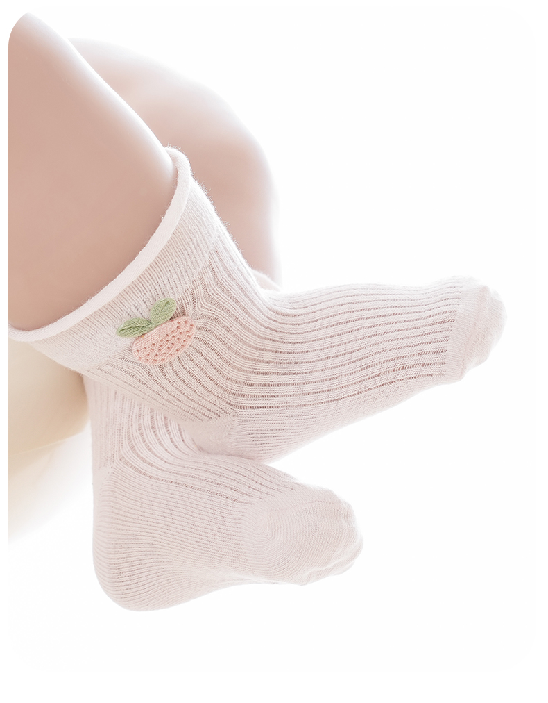 婴儿袜子夏季薄款网眼袜草莓配饰竖条纹中筒袜0-3岁宝宝袜子A类新生儿松口无骨棉袜
