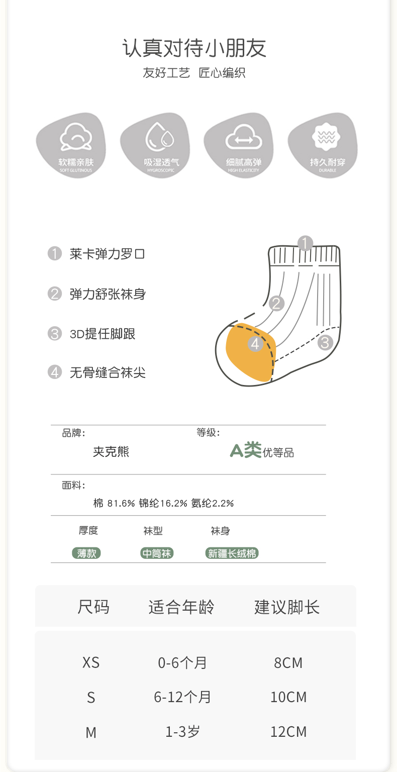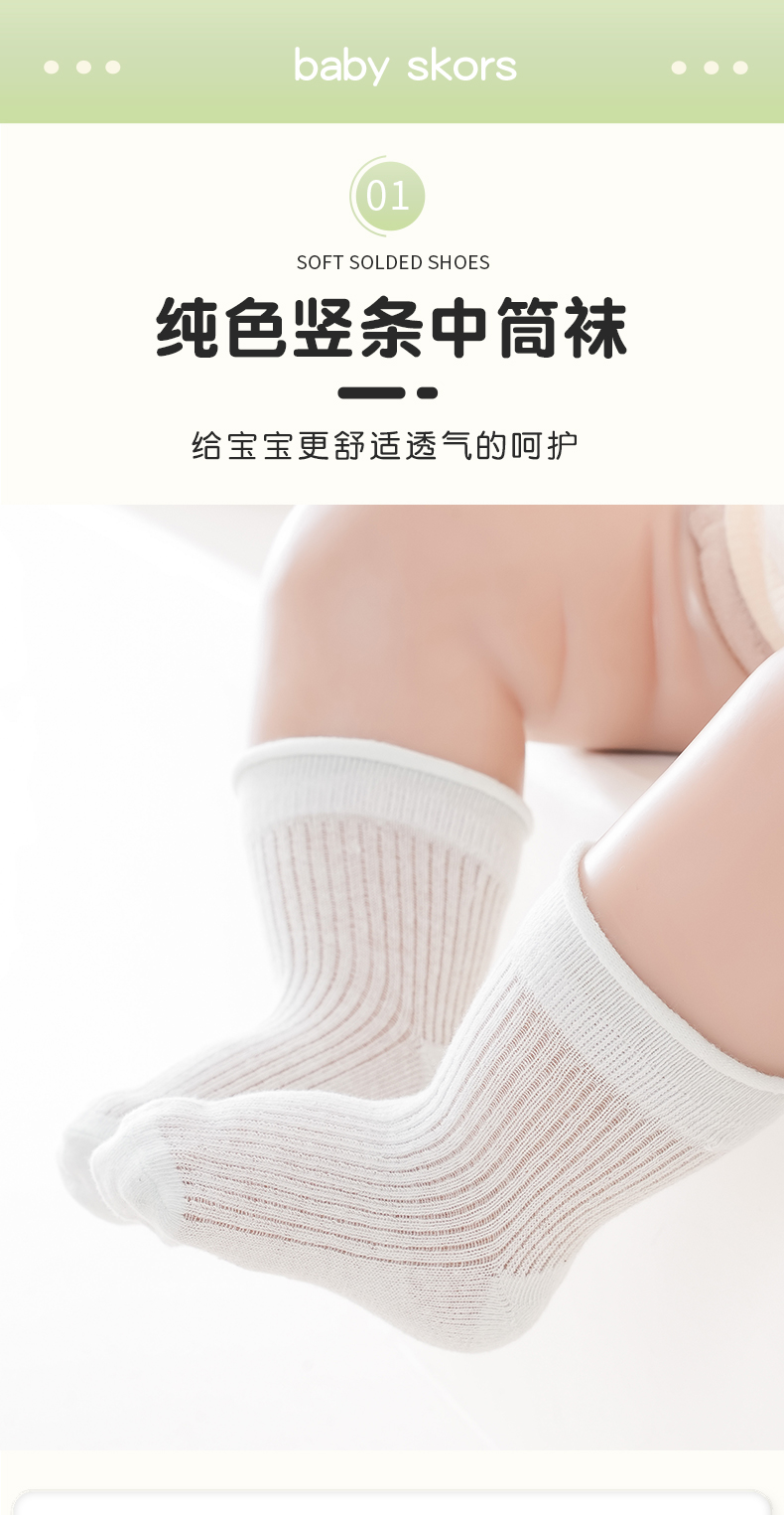 商品名称:夹克熊宝宝袜子A类夏季薄款网眼透气中筒袜纯色卷边袜新生儿精梳棉婴儿袜子