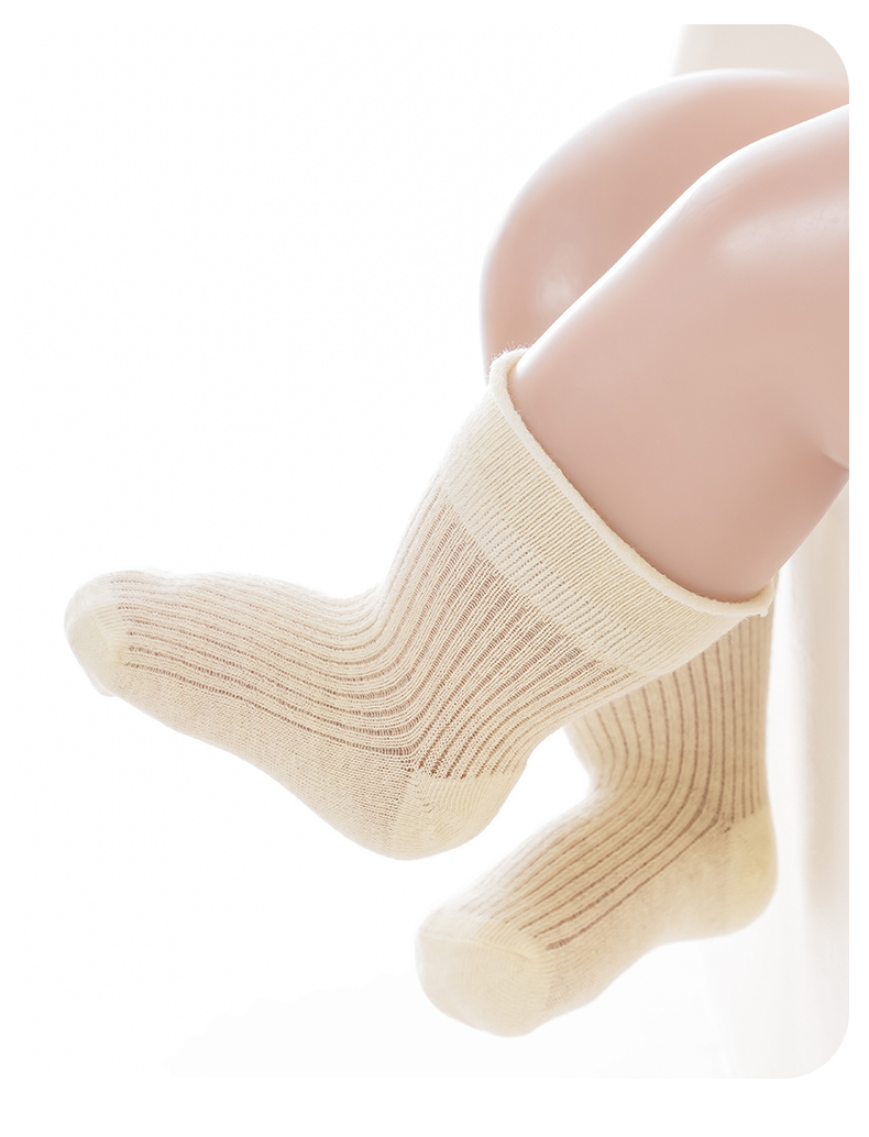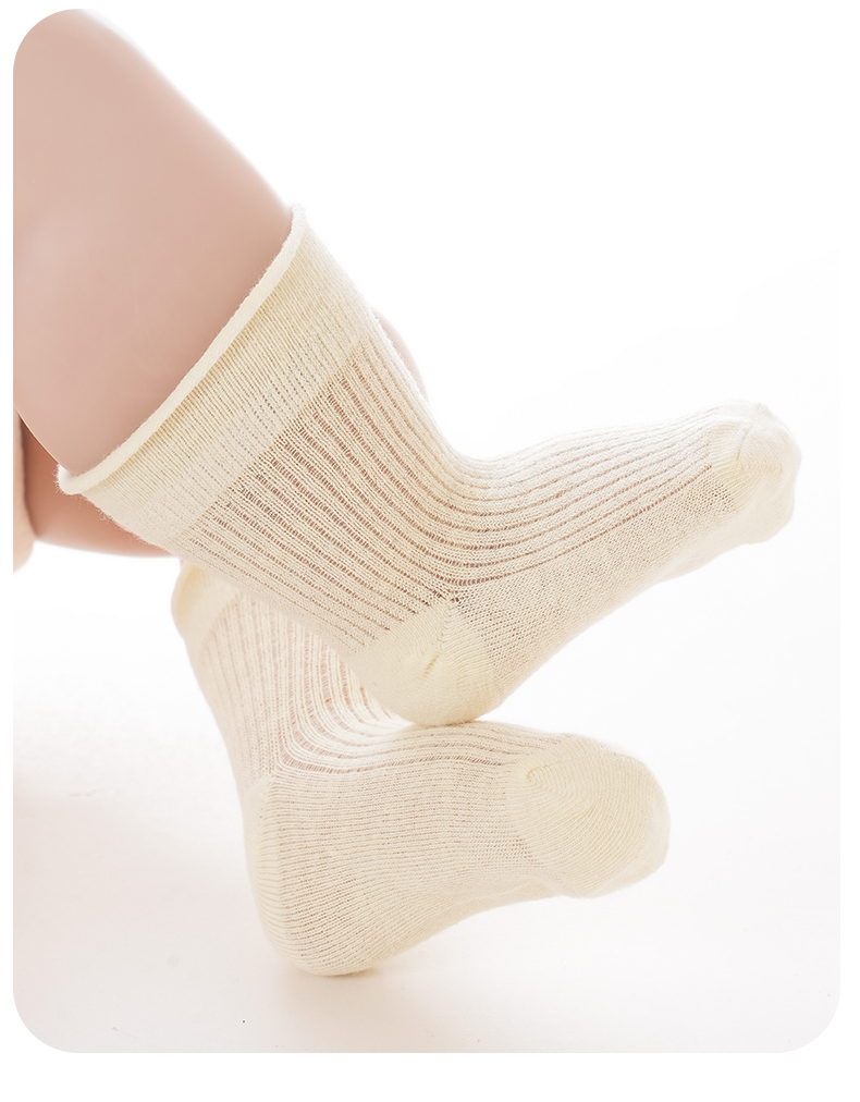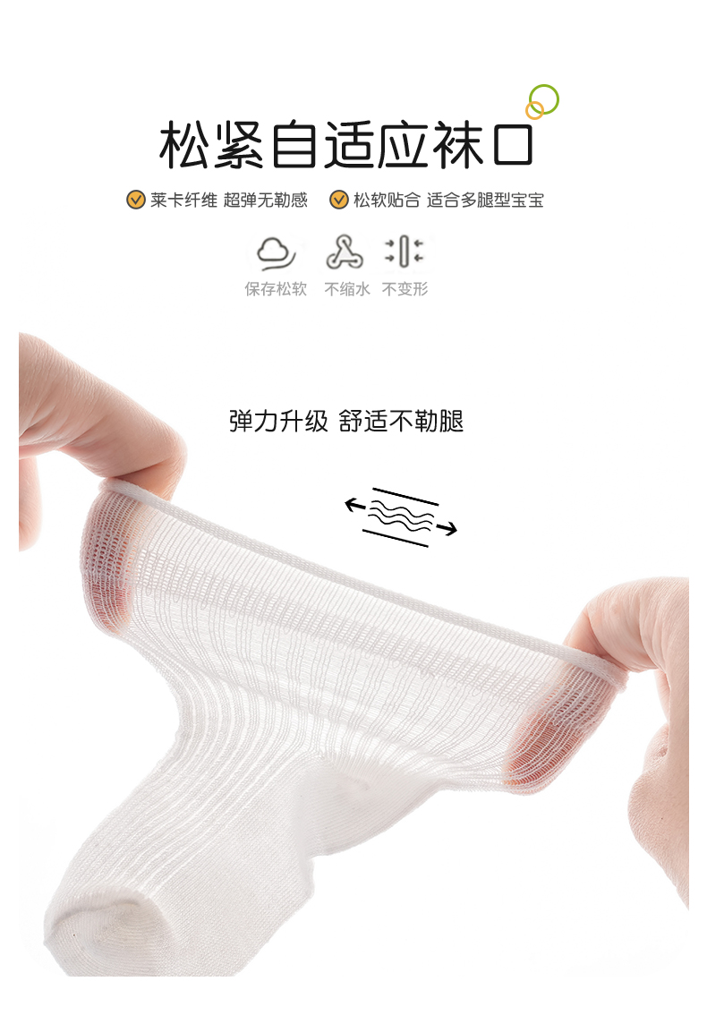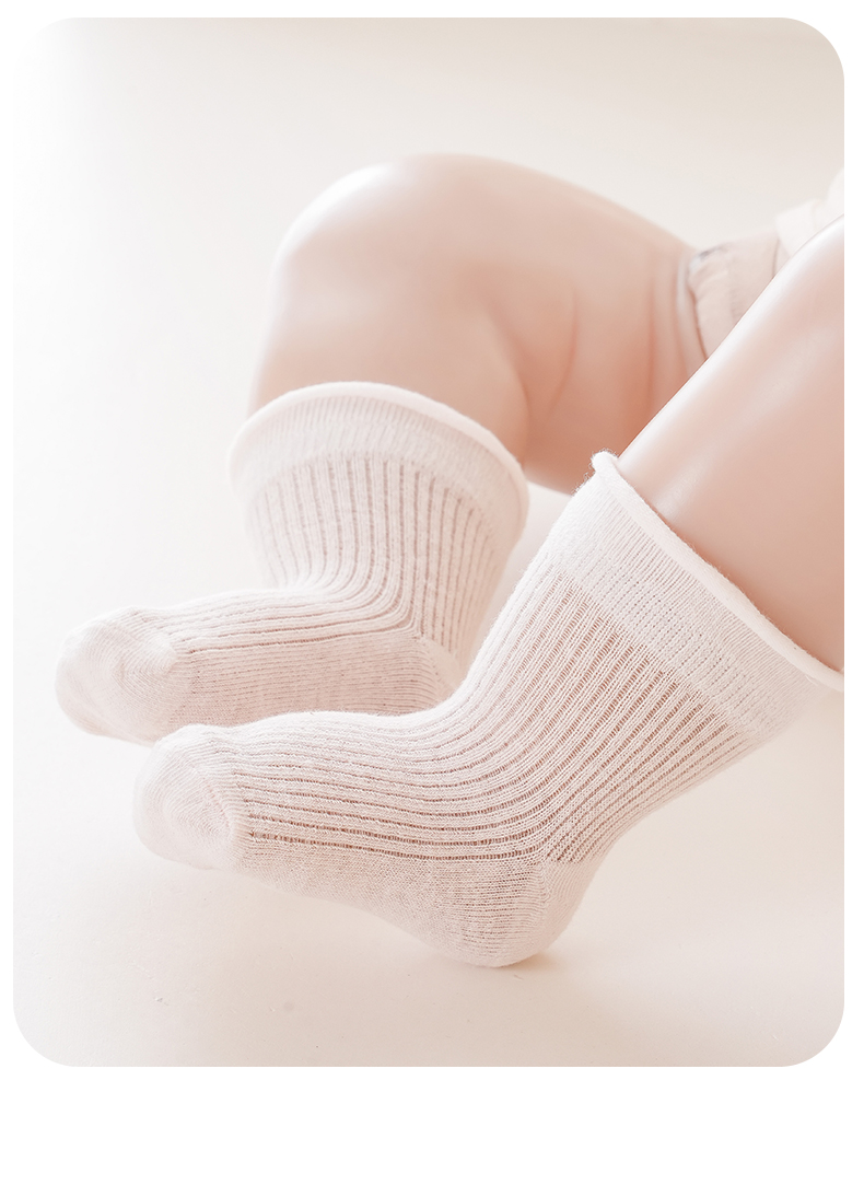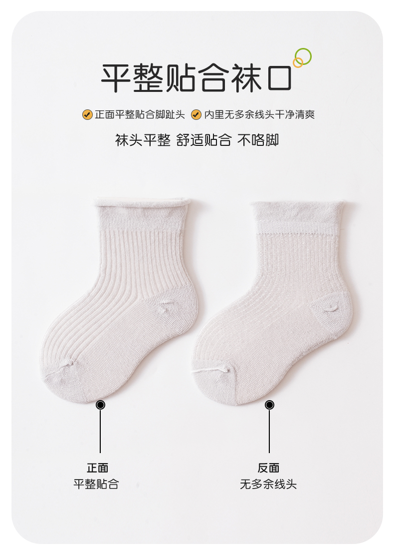 夹克熊宝宝袜子A类夏季薄款网眼透气中筒袜纯色卷边袜新生儿精梳棉婴儿袜子