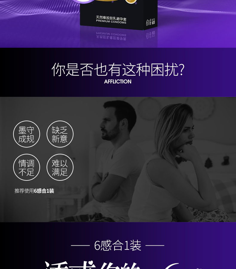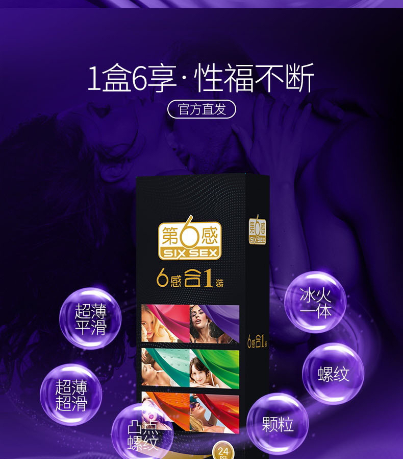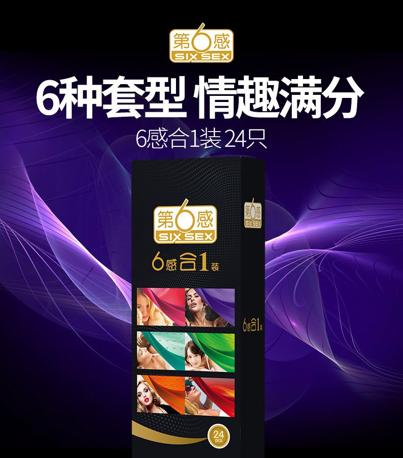 商品名称:第六感 避孕套 安全套 六合一24只装 超薄大颗粒 凸点螺纹 冰火一体套套 男女成人用品