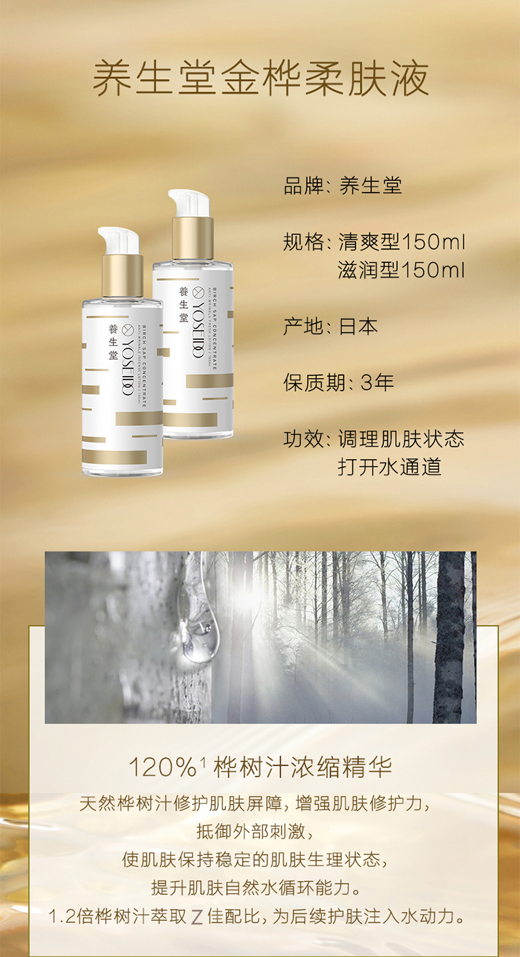 商品名称:养生堂浓缩桦树汁紧致柔肤液150ml清爽滋润 浓缩紧致乳补水保湿修护抗皱强韧肌肤平纹路