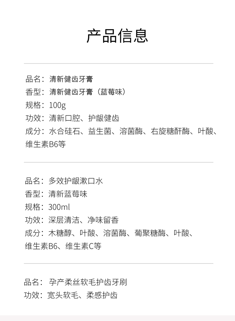 商品名称:袋鼠妈妈准孕妇牙膏牙刷漱口水套装月子牙刷专用护齿护牙龈漱口水套装口腔用品旗舰店