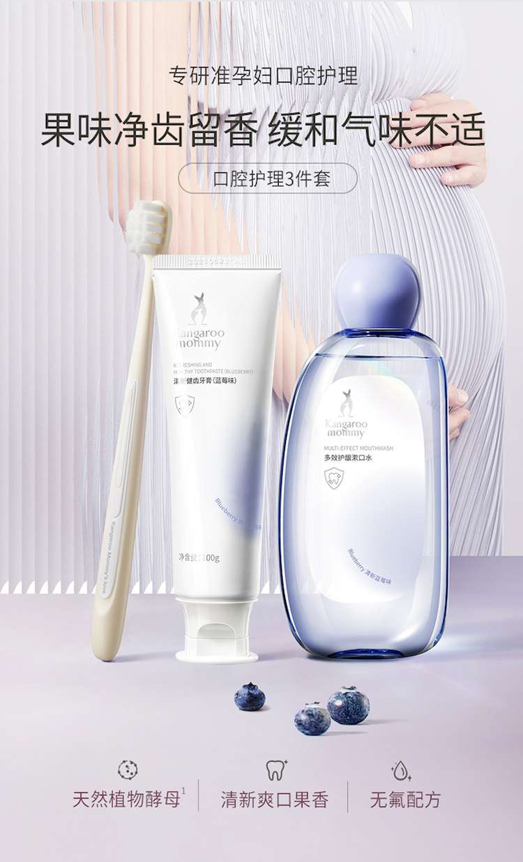 袋鼠妈妈准孕妇牙膏牙刷漱口水套装月子牙刷专用护齿护牙龈漱口水套装口腔用品旗舰店