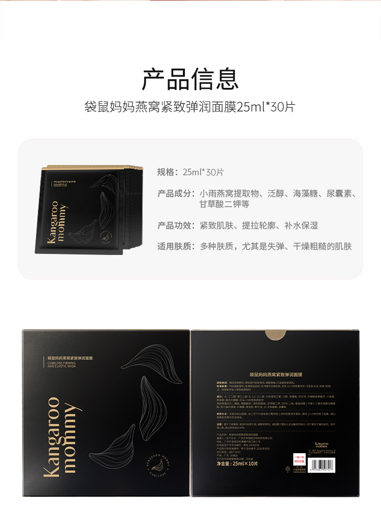 商品名称:袋鼠妈妈 【补水保湿】燕窝面膜护肤品保湿补水紧致防晒霜准孕妇护肤品套装30片装