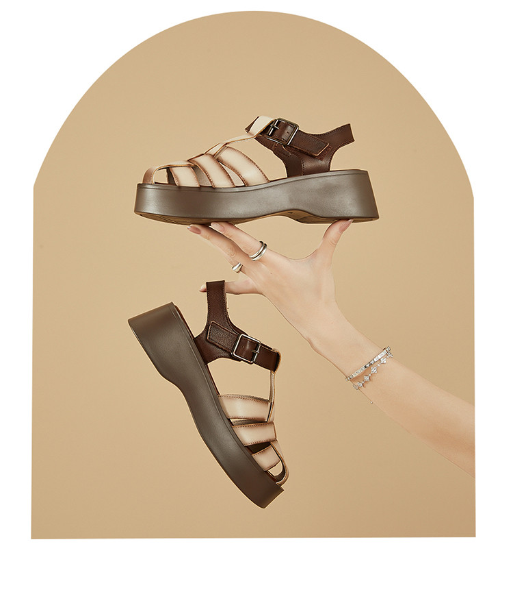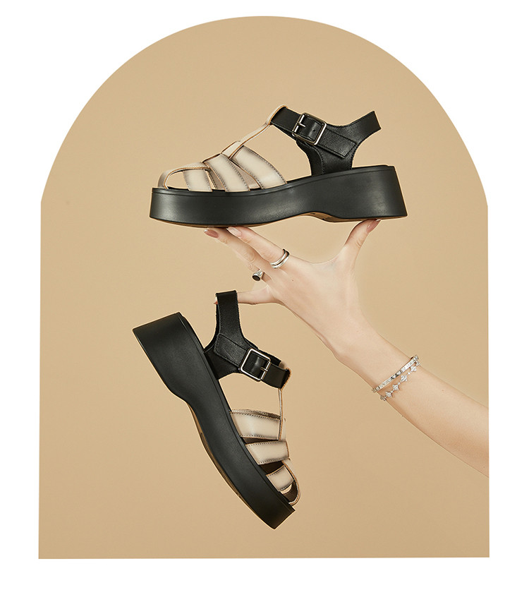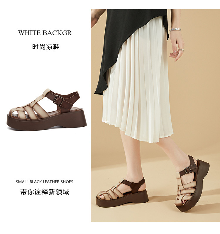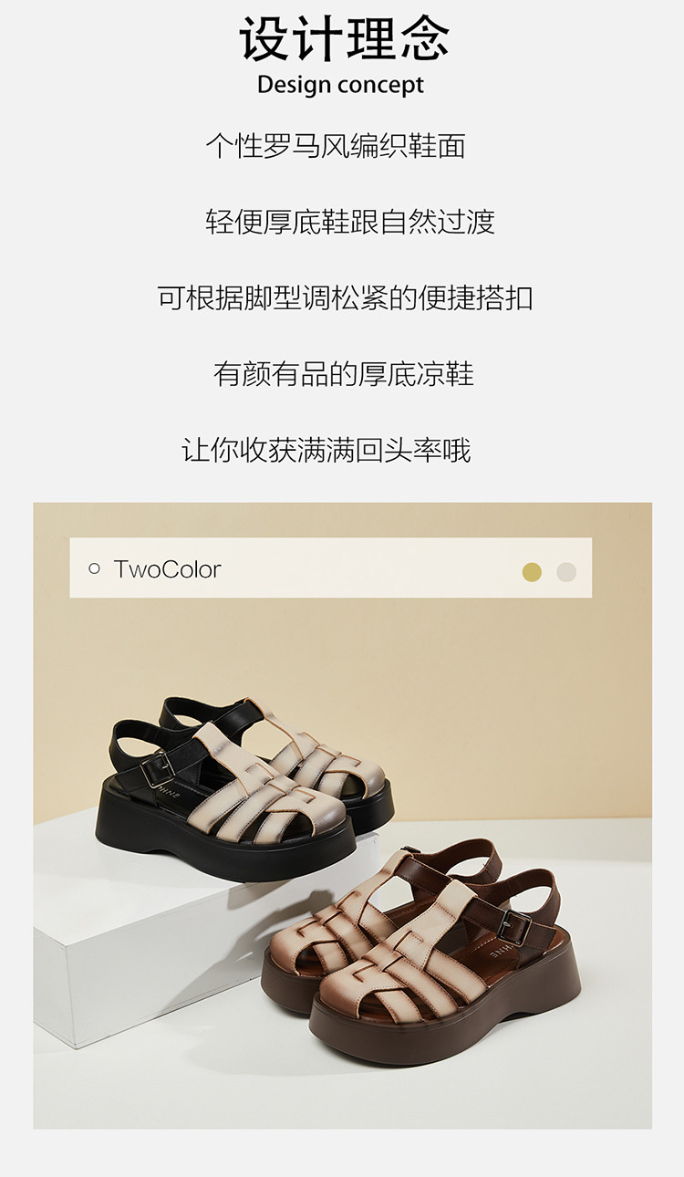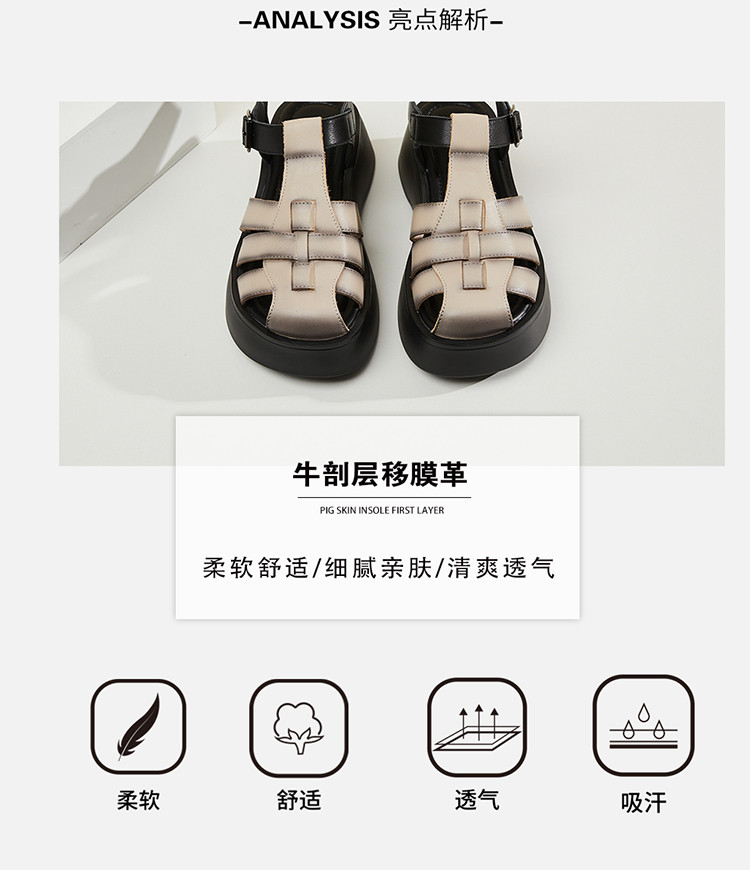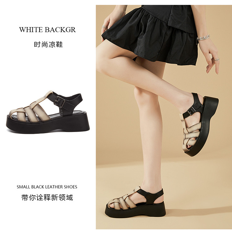 商品名称:【秒增5CM】夏季编织包头凉鞋女罗马凉鞋百搭猪笼鞋运动女凉鞋 552023