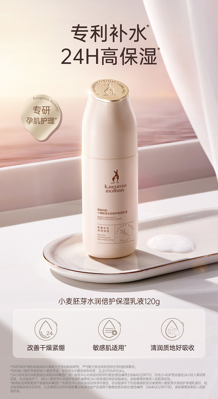 袋鼠妈妈小麦保湿乳液准孕妇可用补水保湿乳润肤乳学生清爽乳液擦脸护肤品正品120g