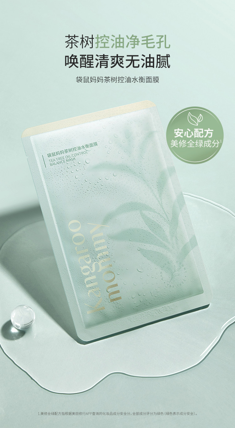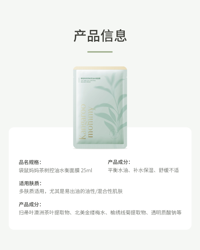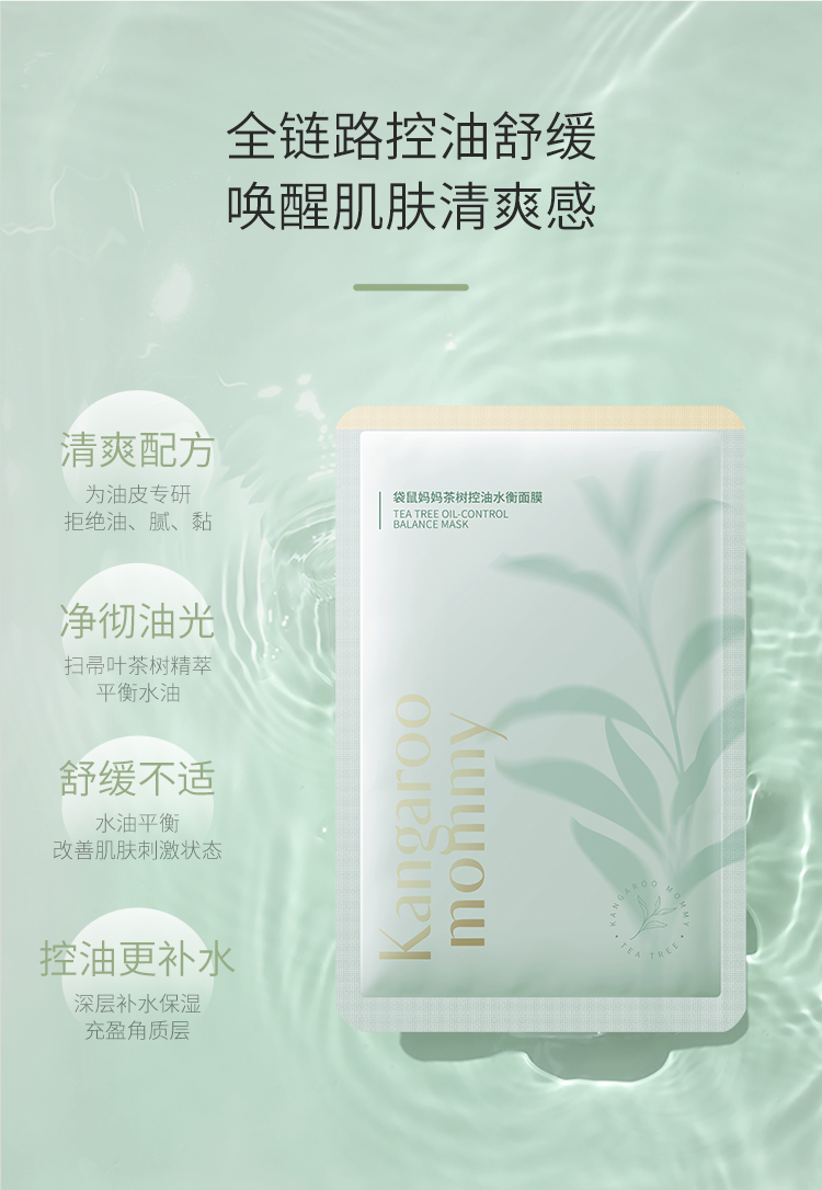 【品牌直供】袋鼠妈妈茶树面膜补水女专用保湿滋润准妈妈可用油皮肤质茶控油25ml*30片