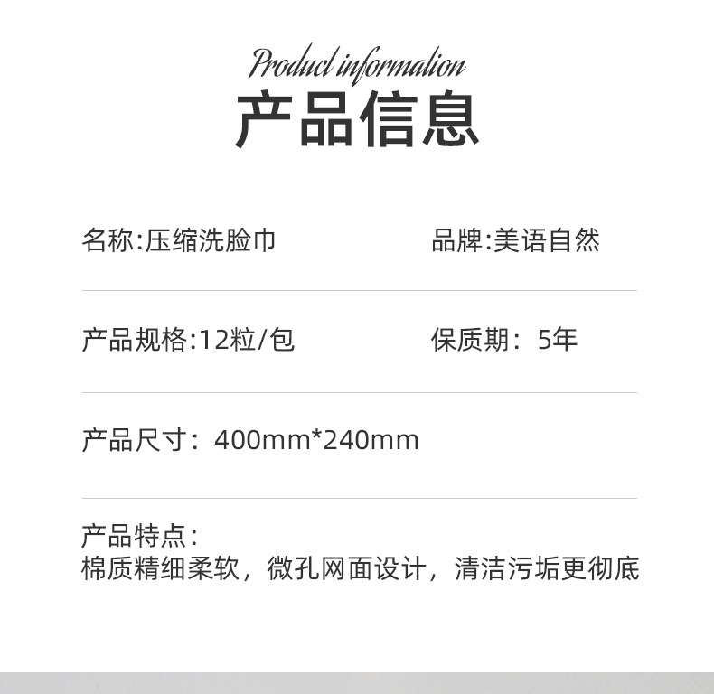 商品名称:旅行出差一次性压缩洗脸巾便携式居家压缩毛巾酒店擦脸洁面巾12粒/袋