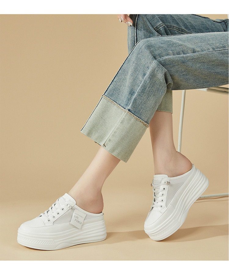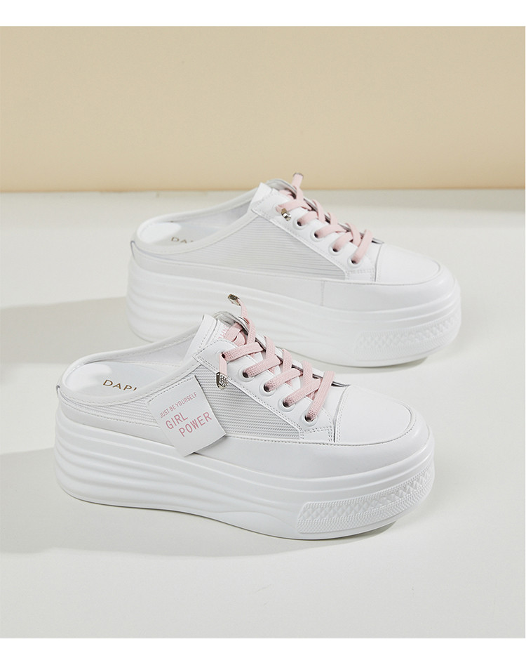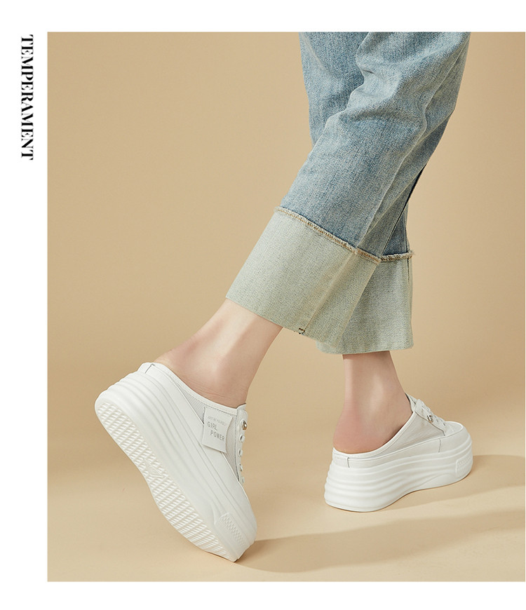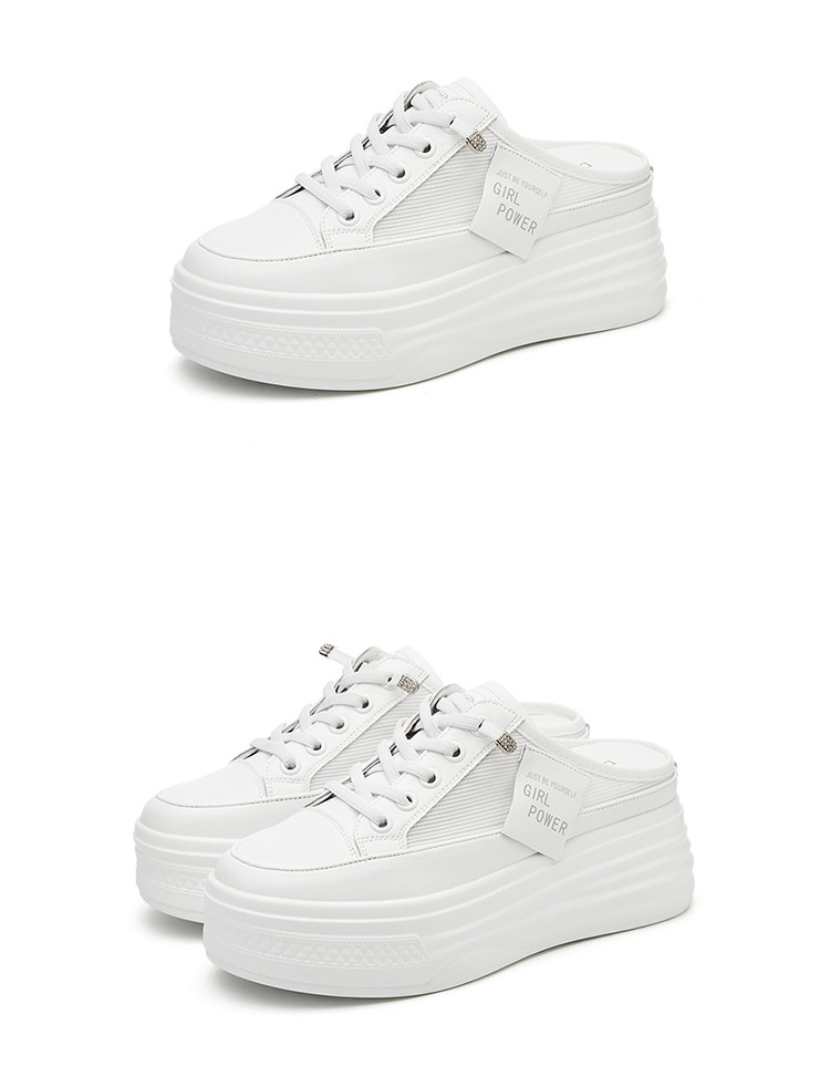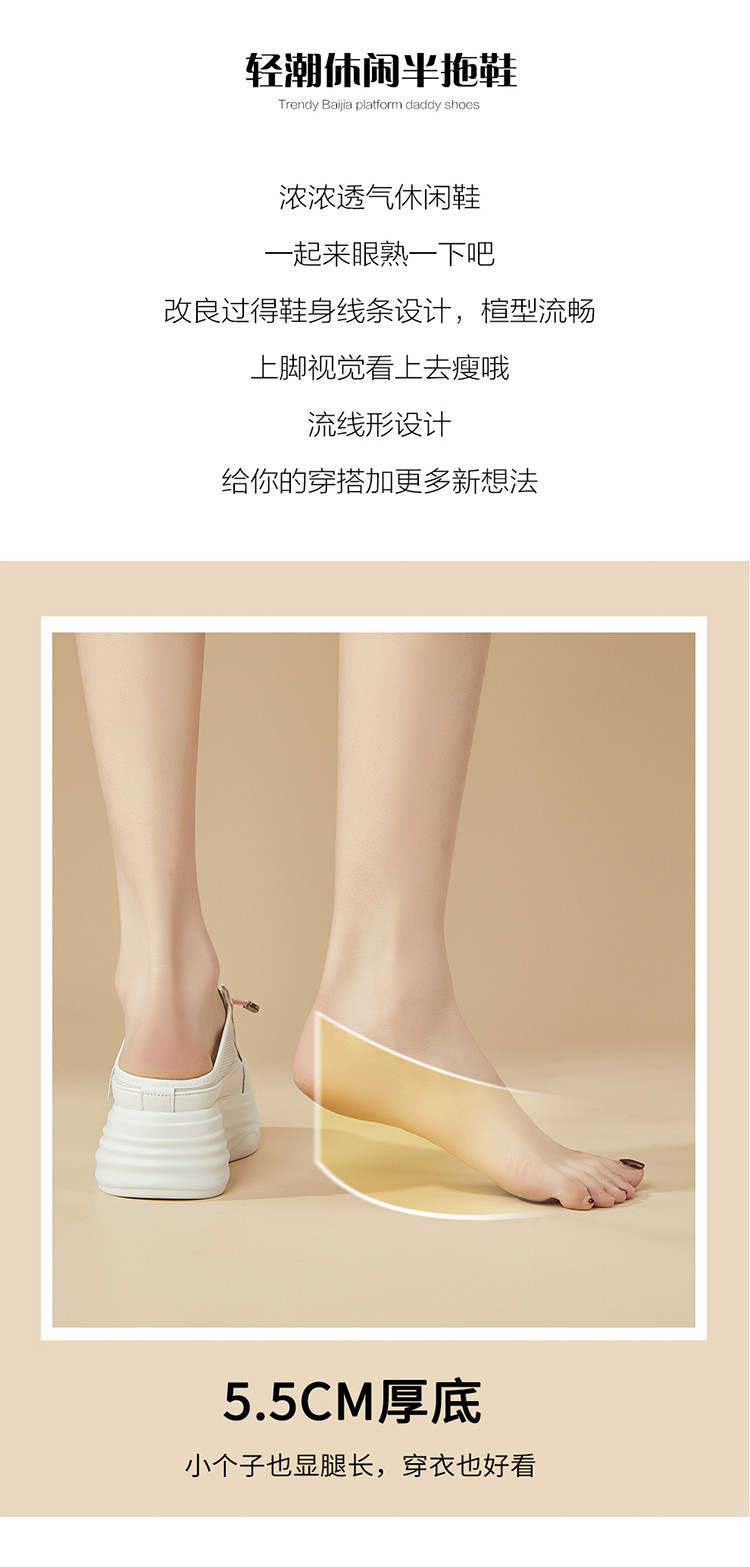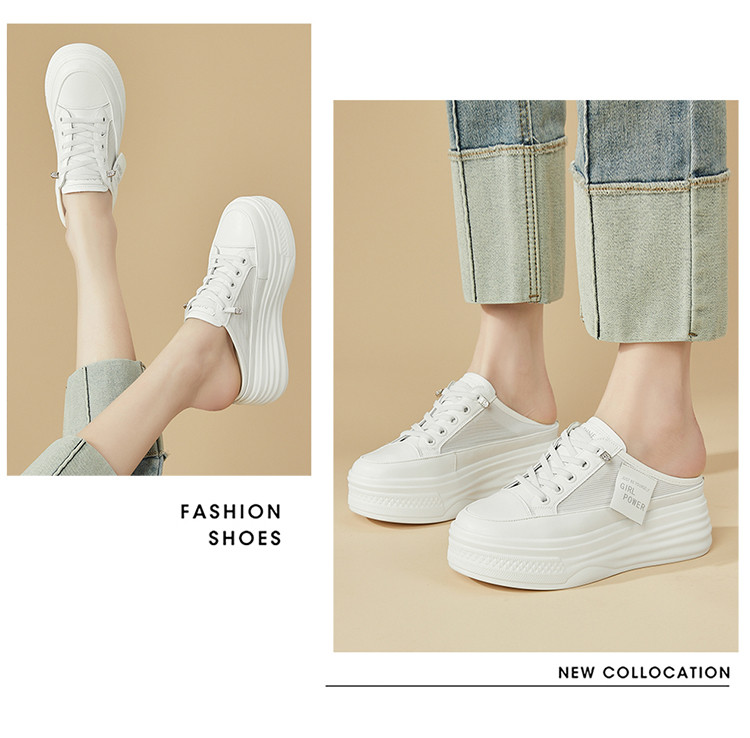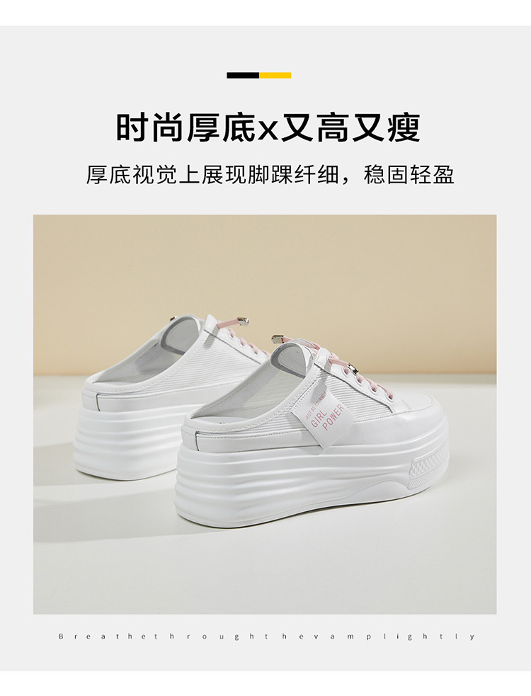 【秒高5.5】夏季包头半拖鞋女外穿松糕厚底小白鞋透气女休闲鞋 144855