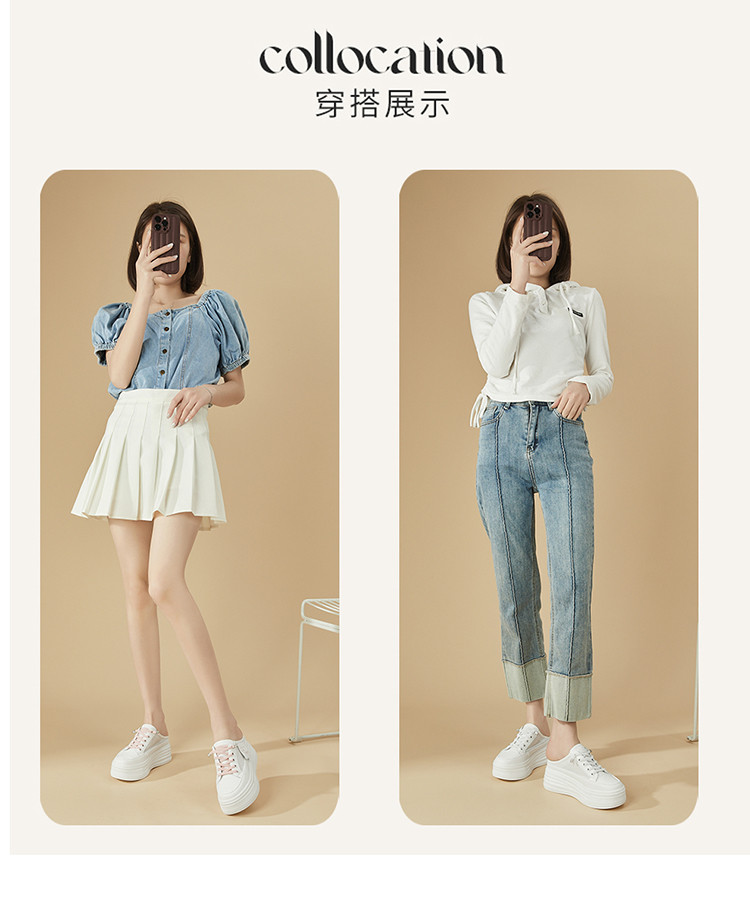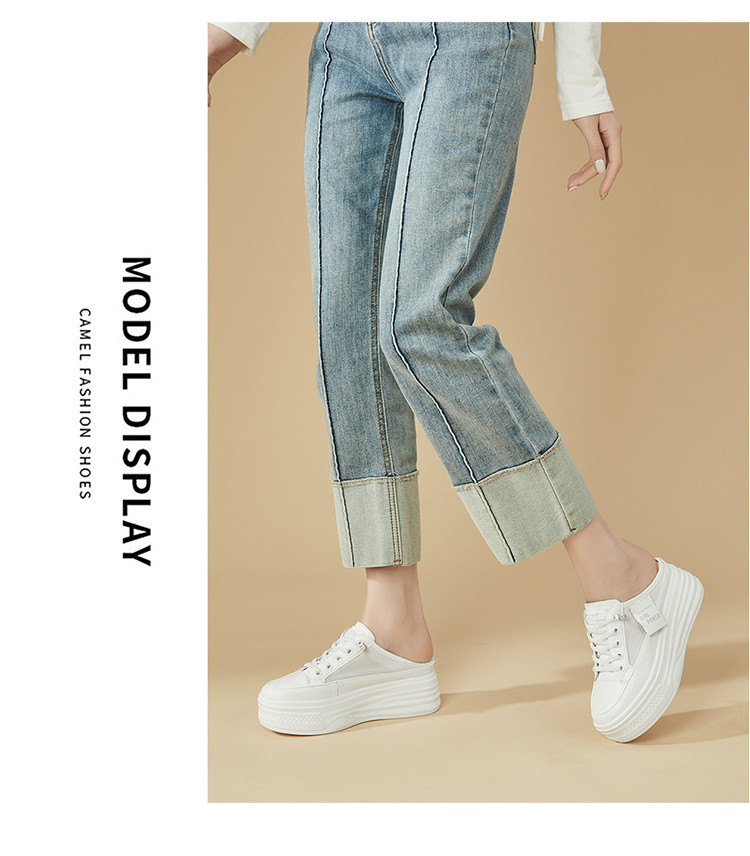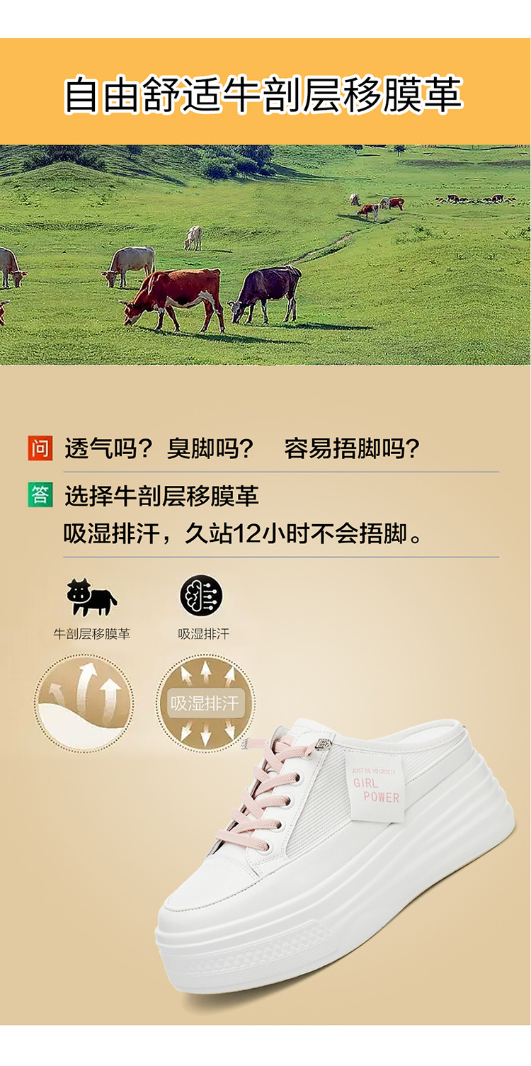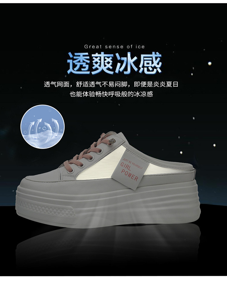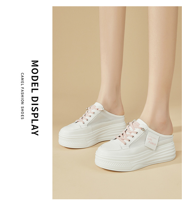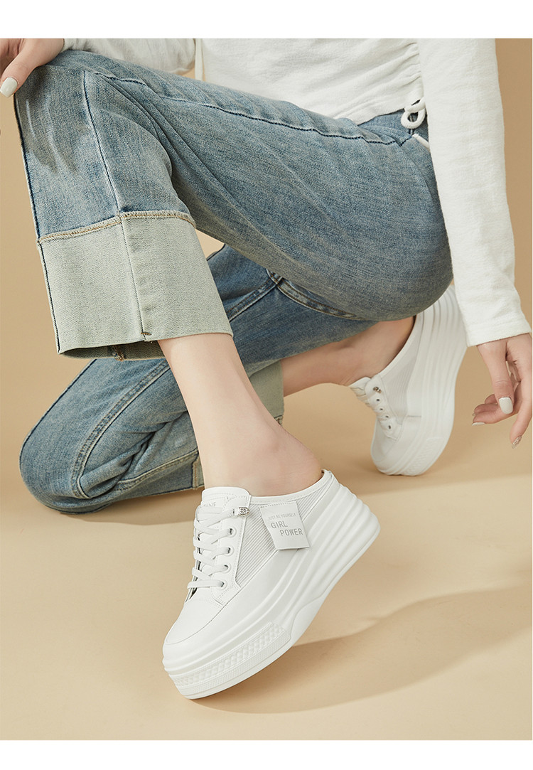 【秒高5.5】夏季包头半拖鞋女外穿松糕厚底小白鞋透气女休闲鞋 144855