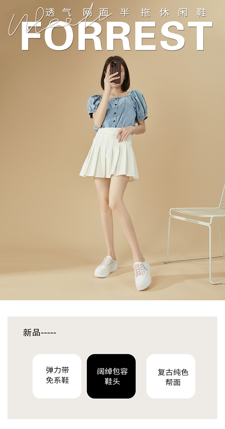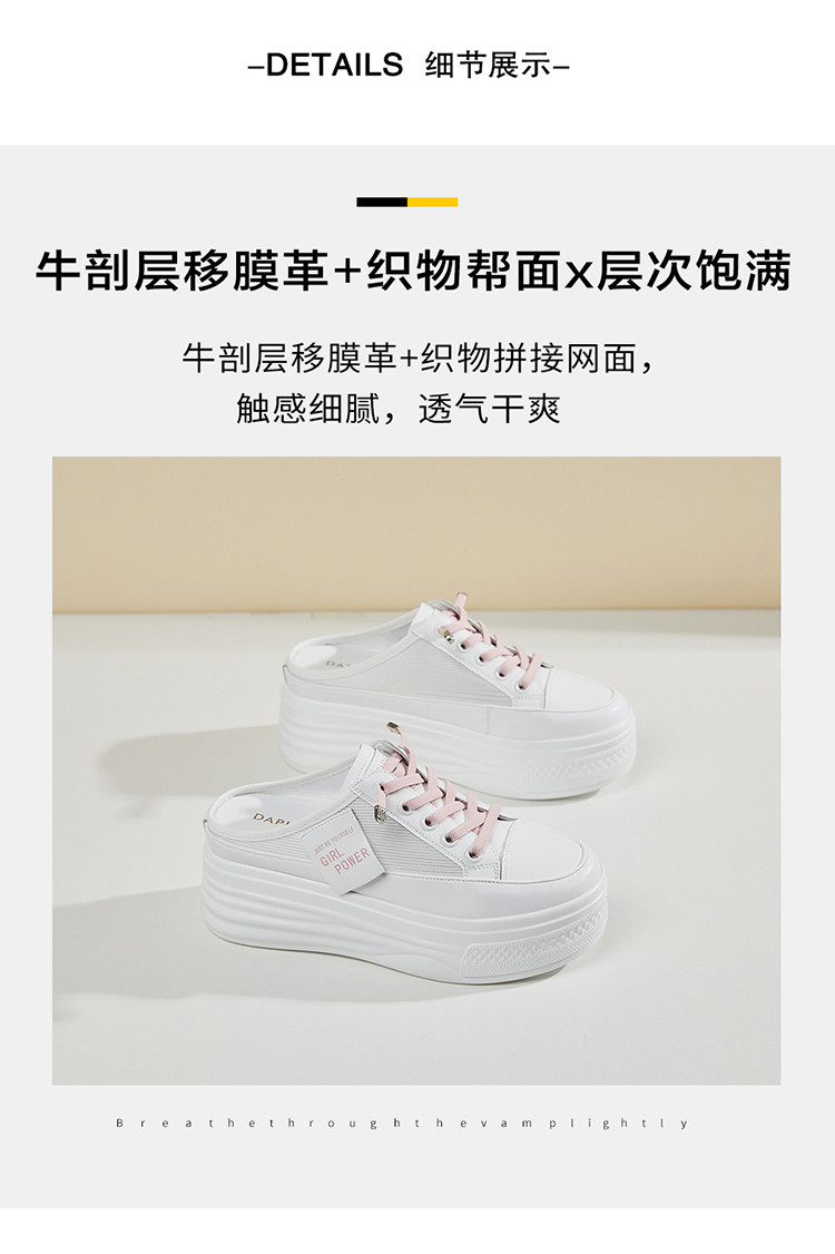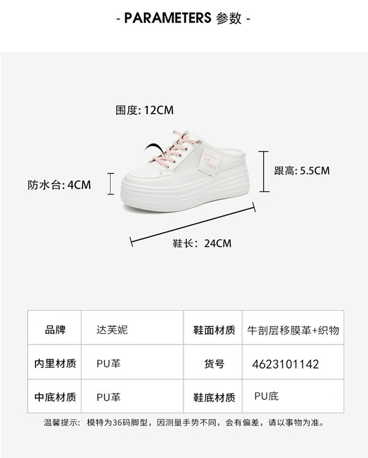 商品名称:【秒高5.5】夏季包头半拖鞋女外穿松糕厚底小白鞋透气女休闲鞋 144855