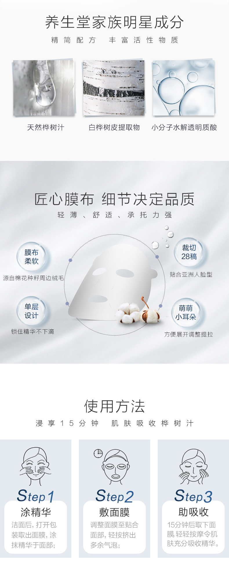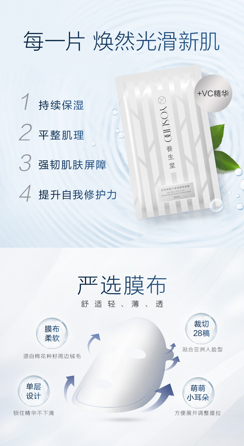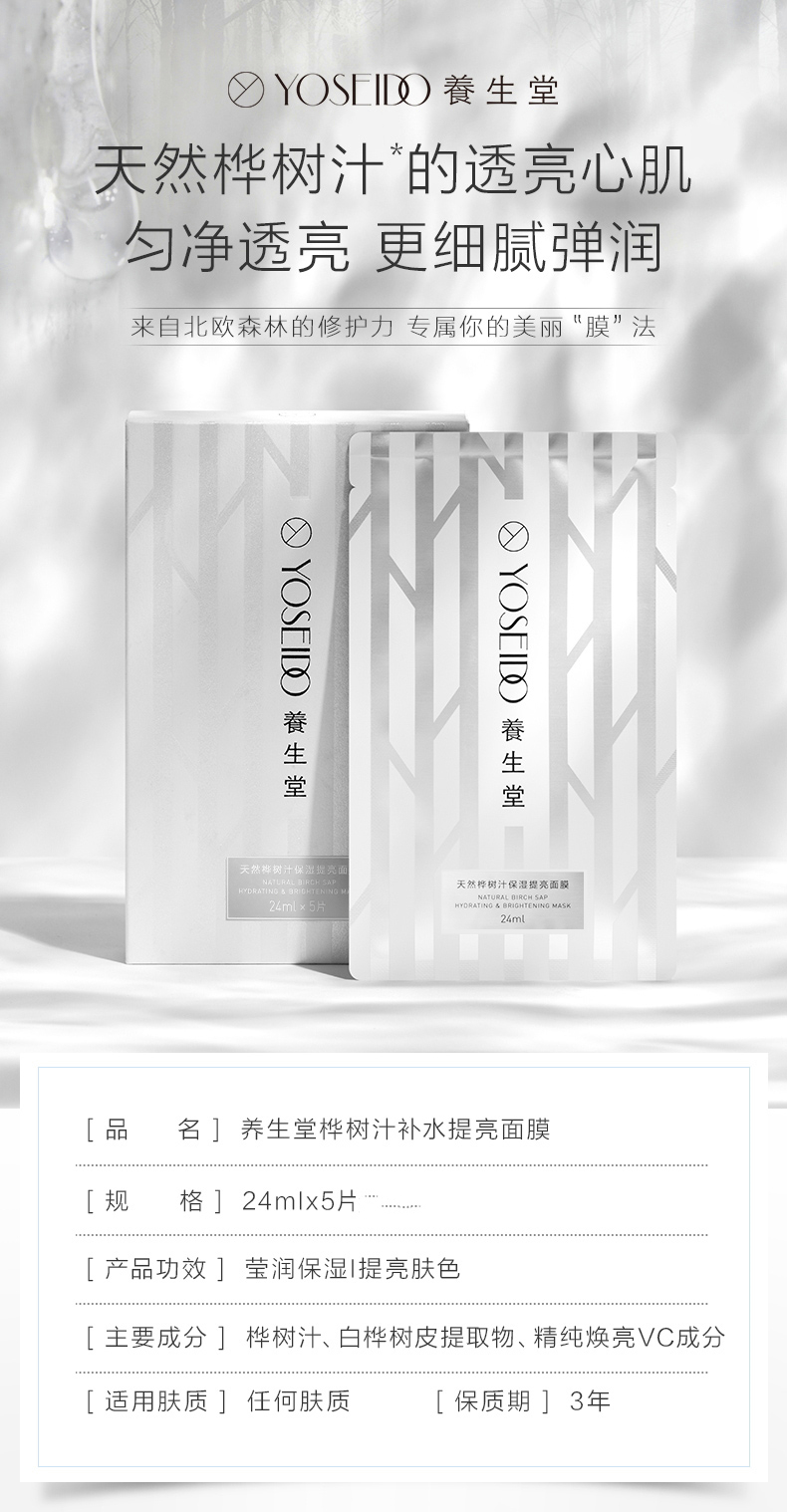 【桦树汁面膜】养生堂桦树汁补水保湿 提亮 水润紧致面膜滋养舒缓滋润提亮肤色5片