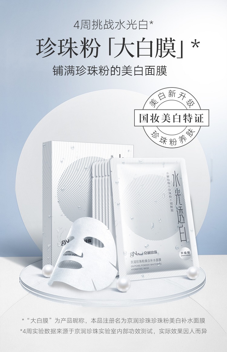 商品名称:【薇娅推荐,门店同款】京润珍珠gN Pearl 亮白淡斑大白膜3盒*25ml*7片 保湿烟酰胺提亮面膜