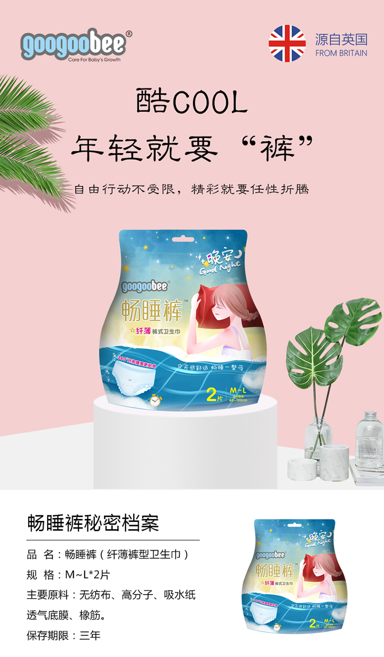 英国googoobee乖乖宝贝安心裤安睡裤加大成人拉拉裤产妇经期安全裤姨妈巾夜安裤型卫生巾