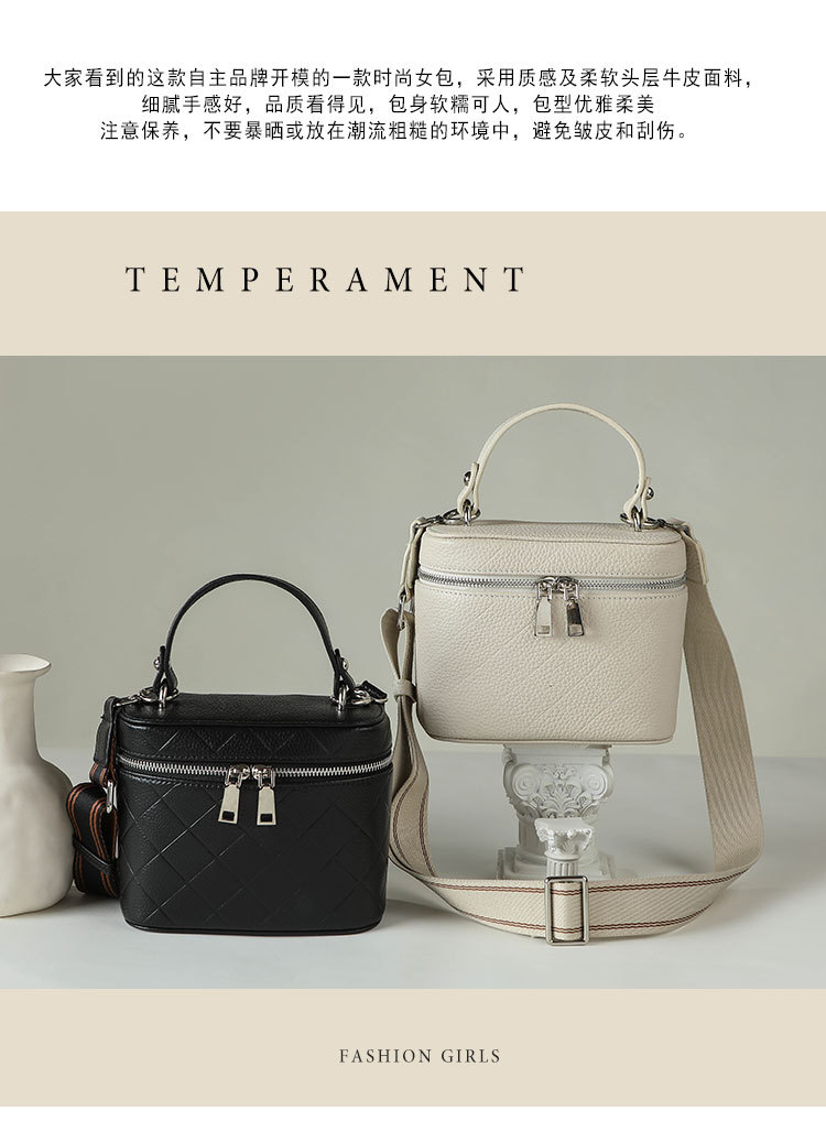 商品名称:彤彤兔 真皮包包菱格大容量头层牛皮女包手提盒子包单肩斜挎