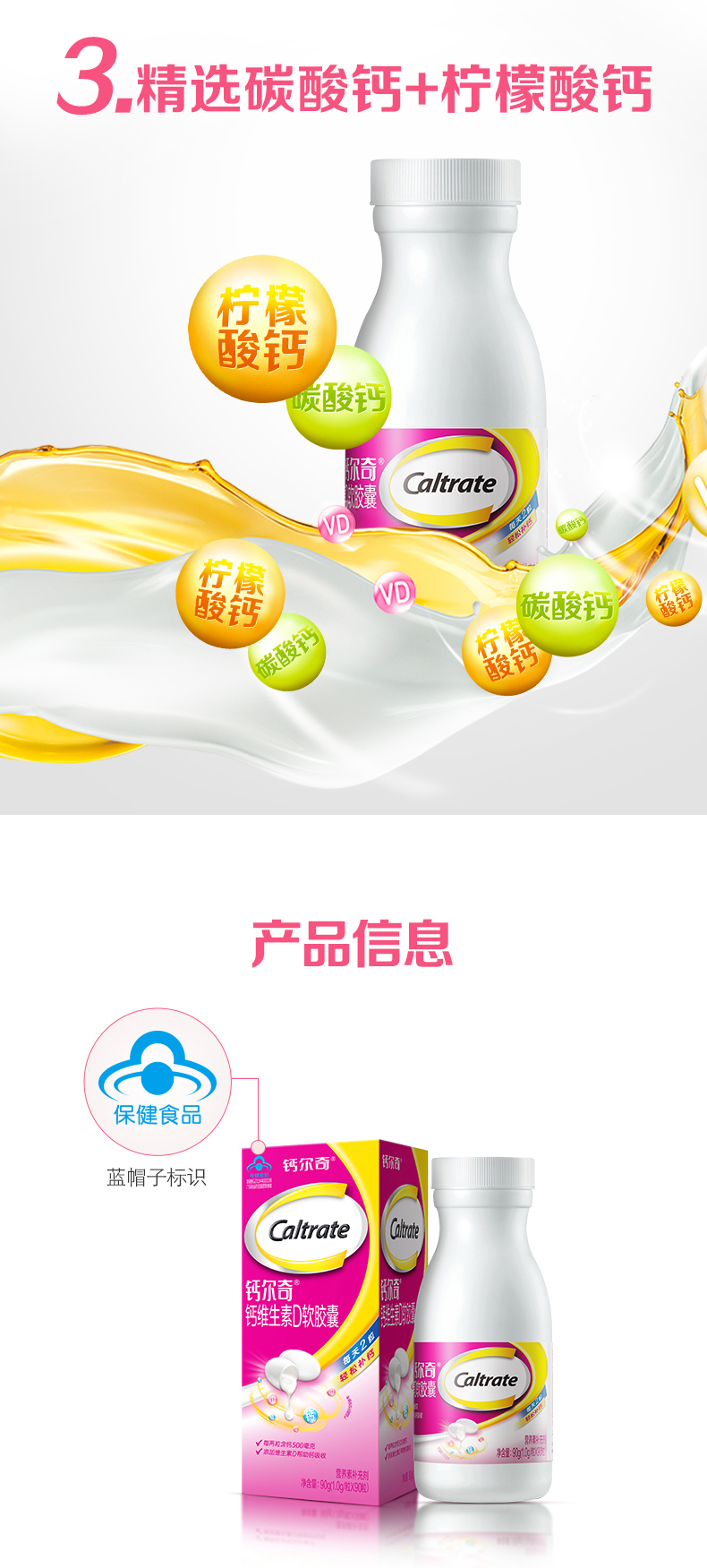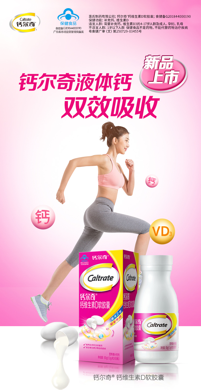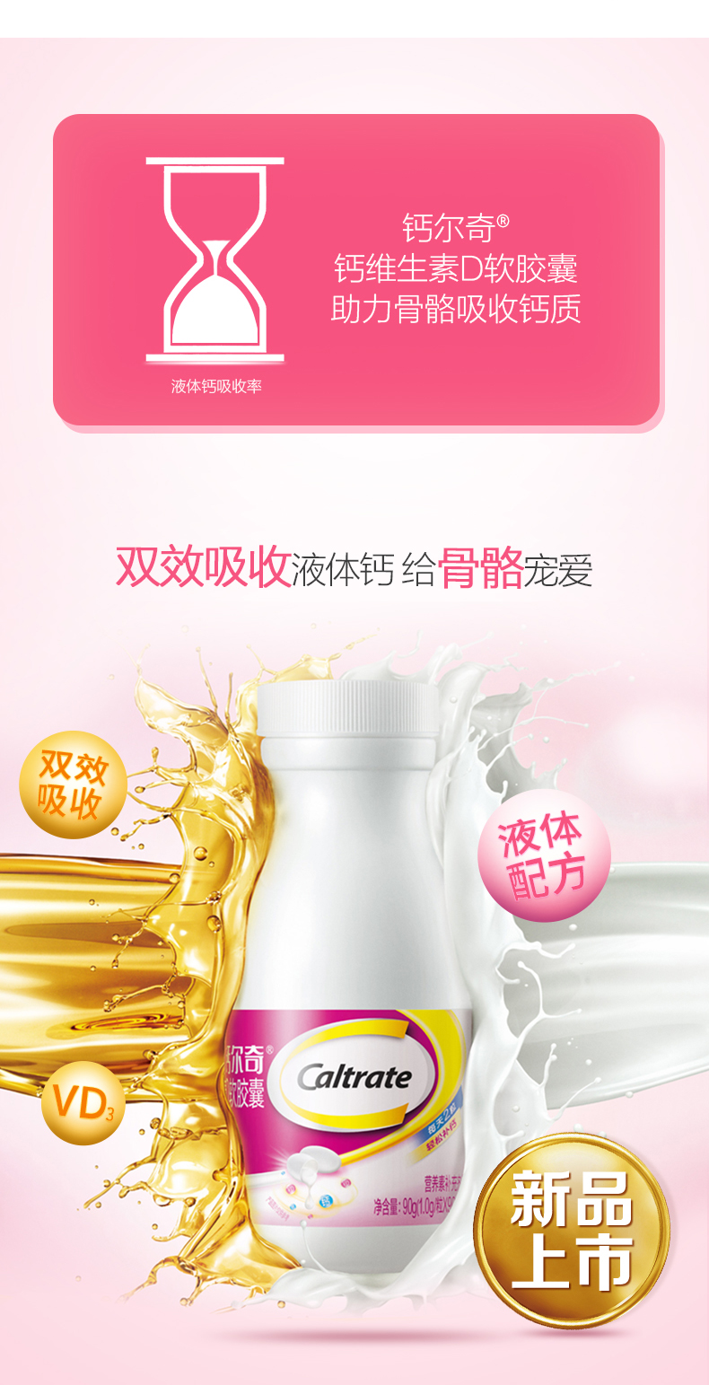商品名称:新日期钙尔奇(Caltrate)液体钙 补钙 维生素D钙片软胶囊 儿童孕妇乳母成人中老年人90粒