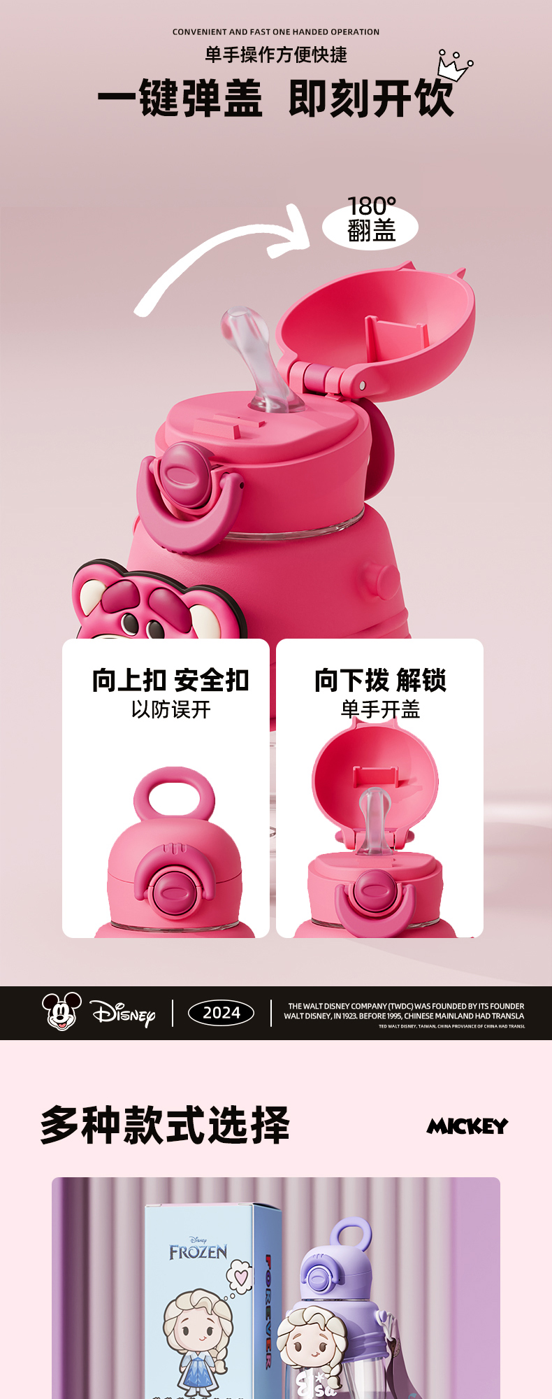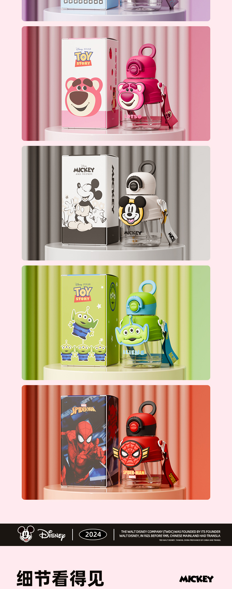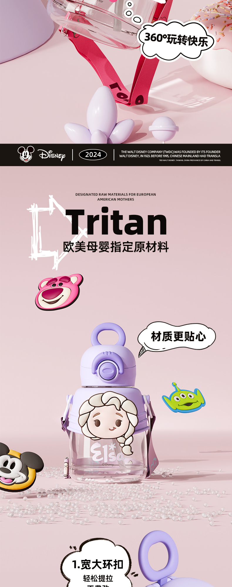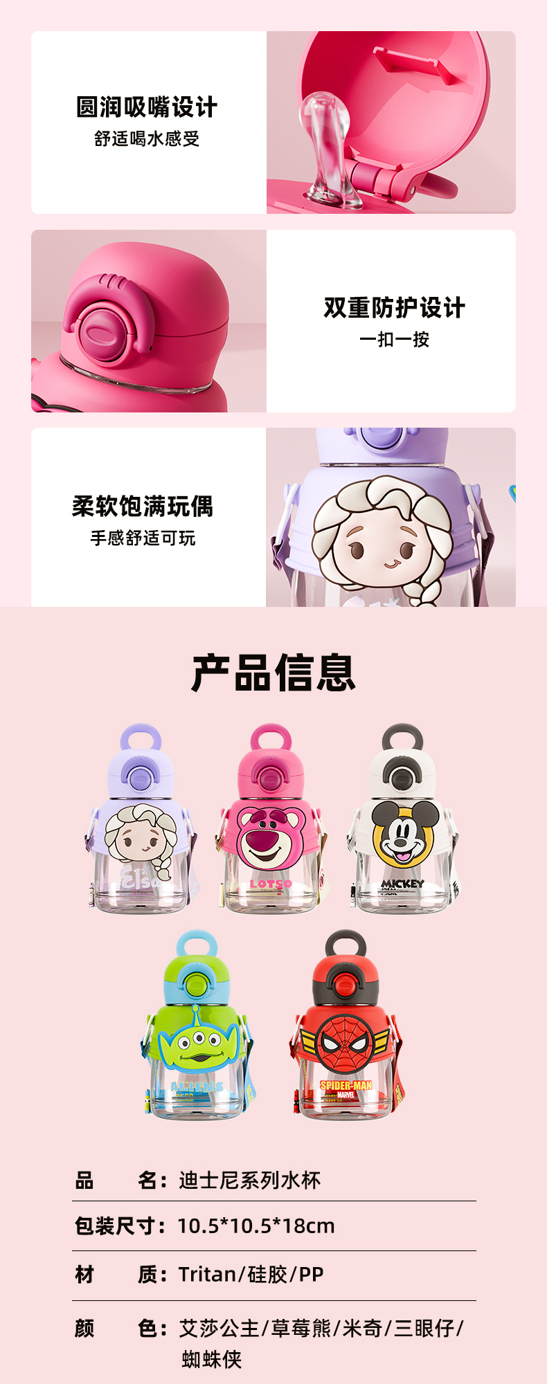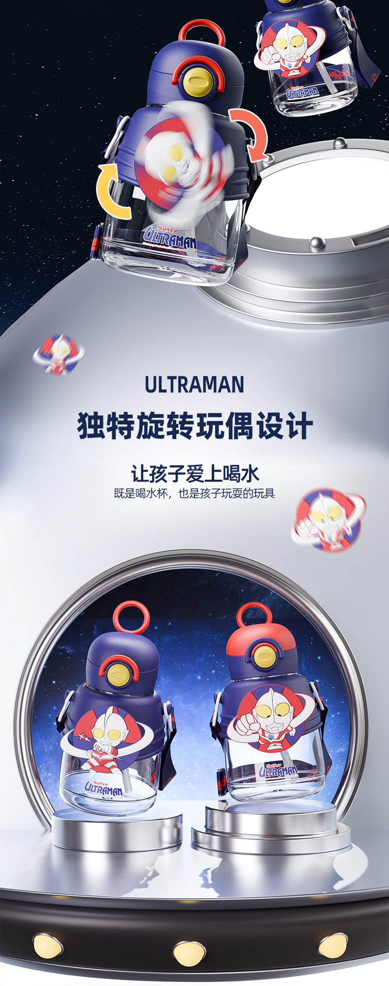 奥特曼迪士尼儿童水杯Tritain小学生男上学水壶大容量卡通吸管杯子高颜值饮水杯750ml
