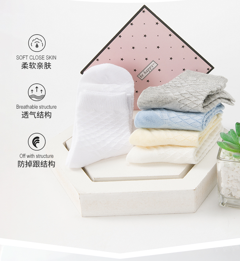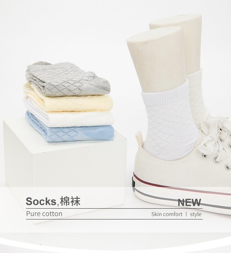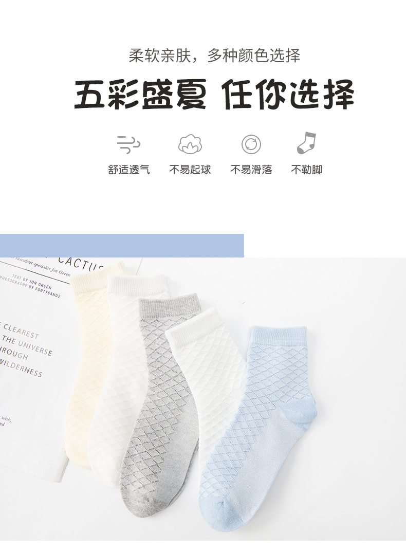 商品名称:彩桥儿童袜子夏季薄款3-15岁棉袜棉春夏男童女童春秋透气网眼袜5双装