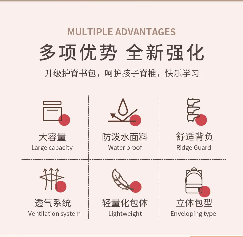backcare 力悬浮护脊书包 骑士玫红(1-3年级)