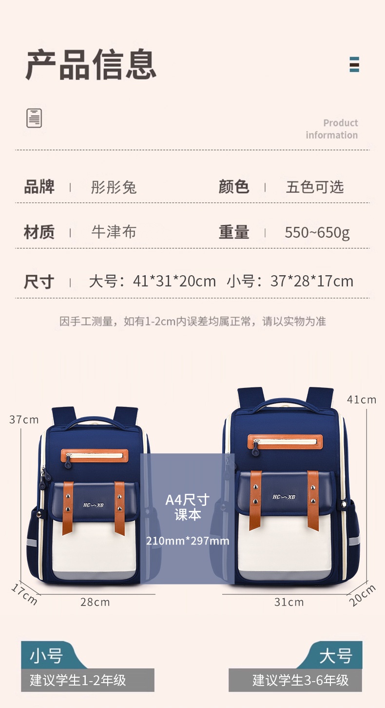 商品名称:彤彤兔 儿童小学生书包男生女生1-3-6年级大容量轻便护脊双肩包