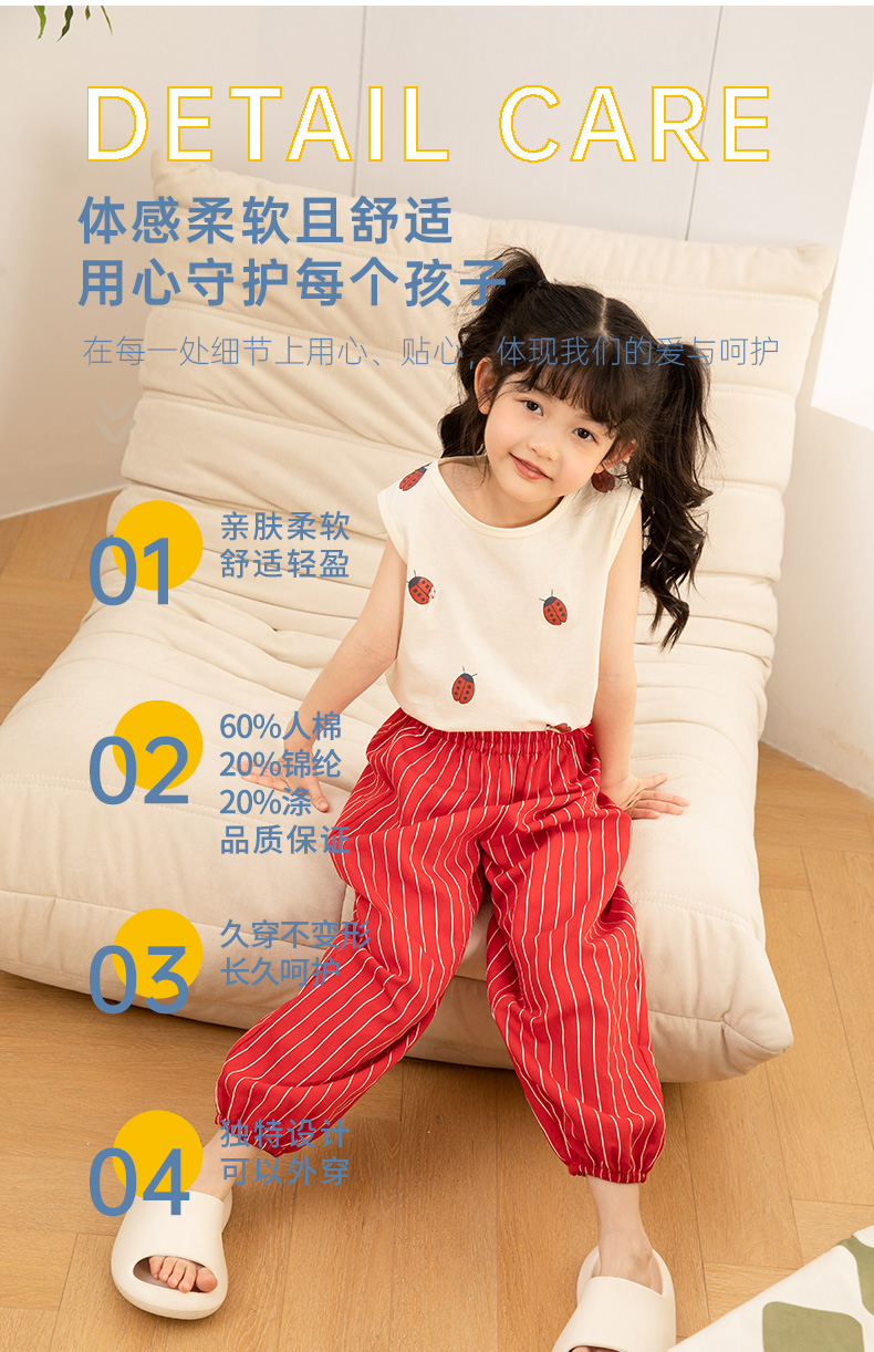 商品名称:彩桥儿童裤子男童女童防蚊裤透气防晒外出薄款宝宝束脚裤运动裤宽松灯笼裤