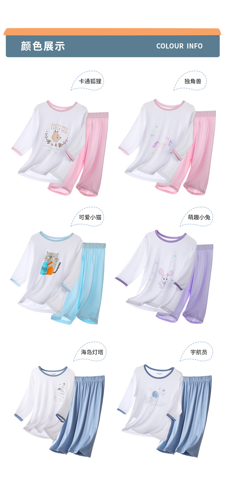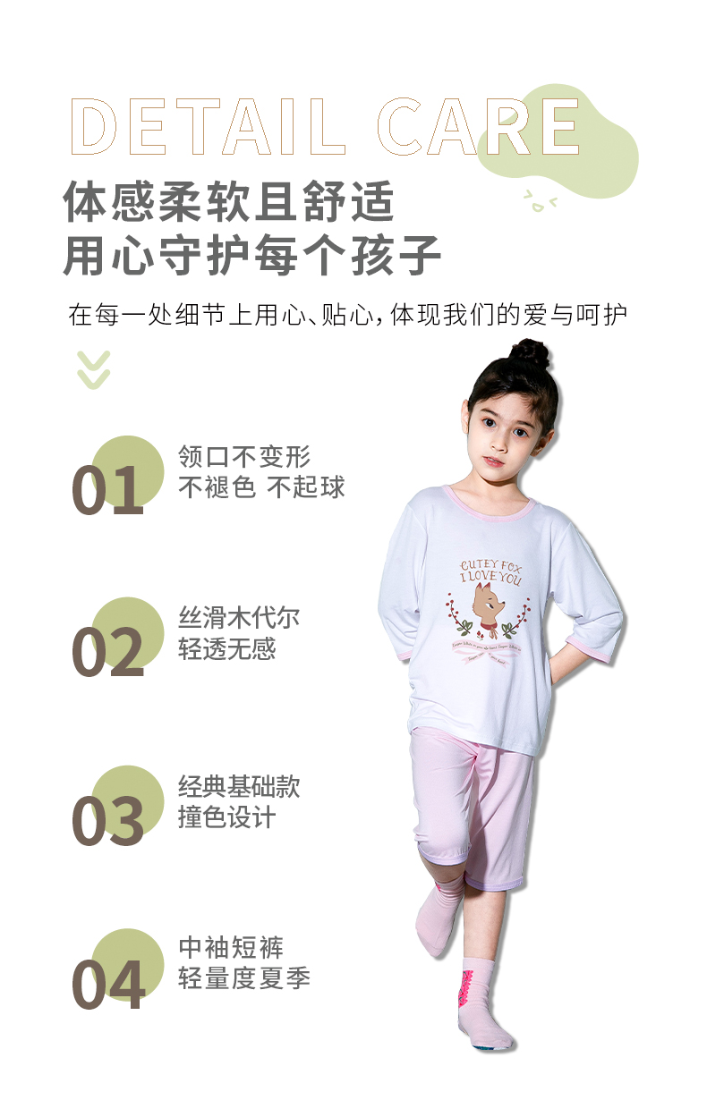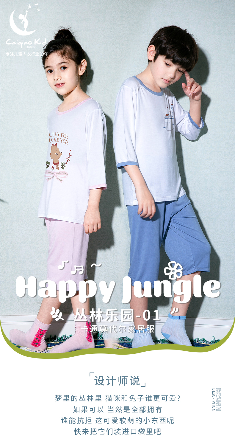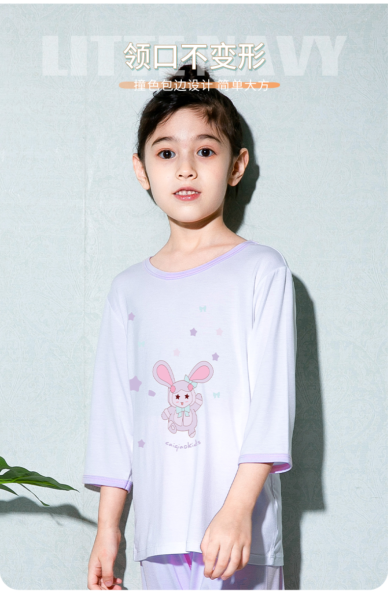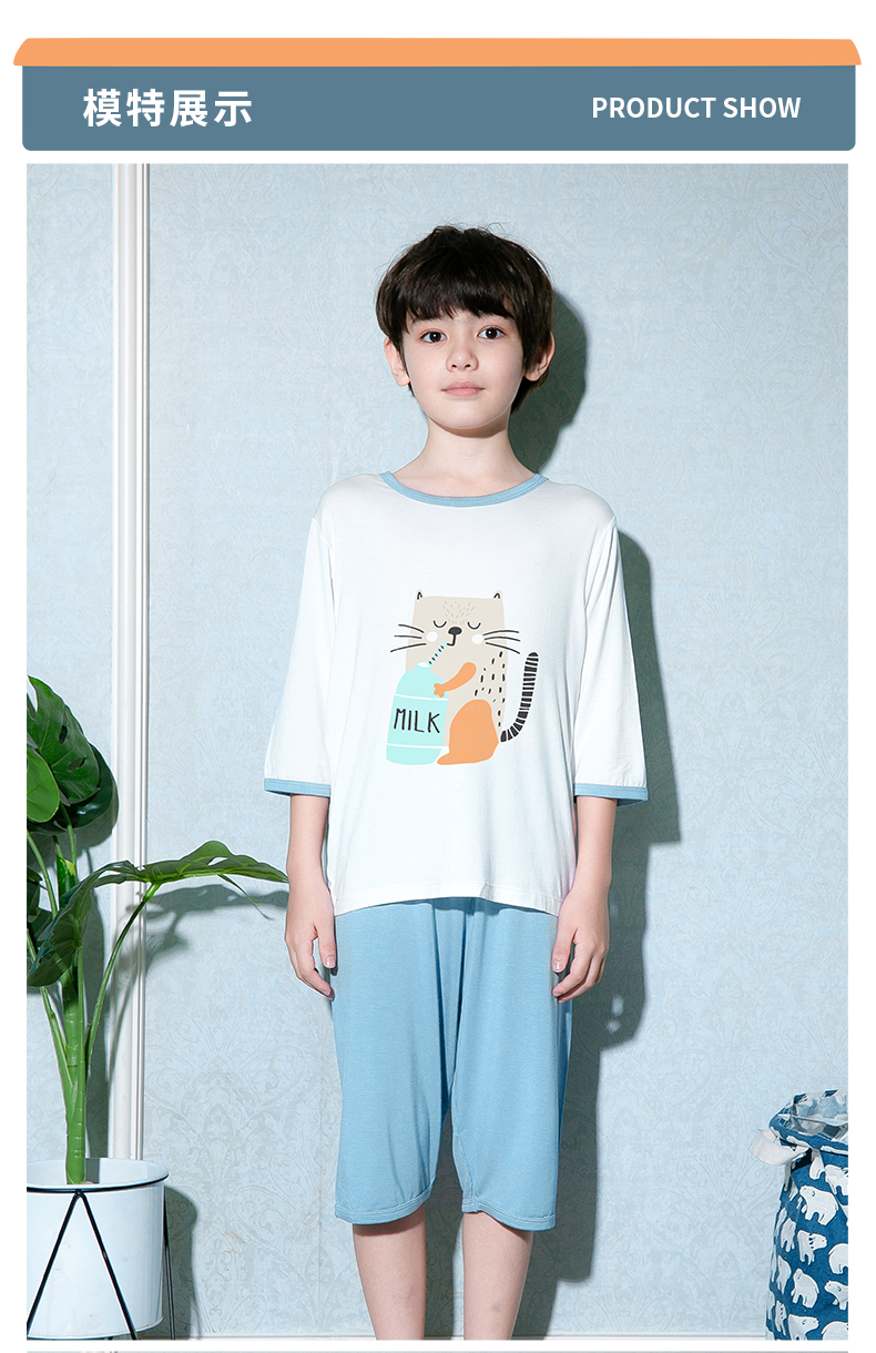 商品名称:彩桥儿童莫代尔睡衣夏季薄款男童七分袖亲子家居服套装冰丝女童空调服