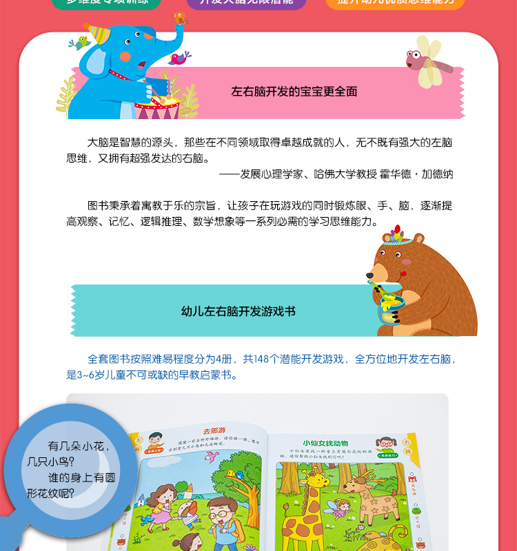 商品名称:全4册儿童全脑思维训练左右脑智力开发找不同专注力训练书籍 2-3-6岁思维逻辑幼儿礼物