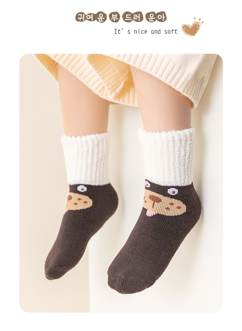 柠檬舒品Lemonsox冬季新款加绒加厚毛圈中筒袜子儿童保暖男宝女宝舒适学生袜子3双装