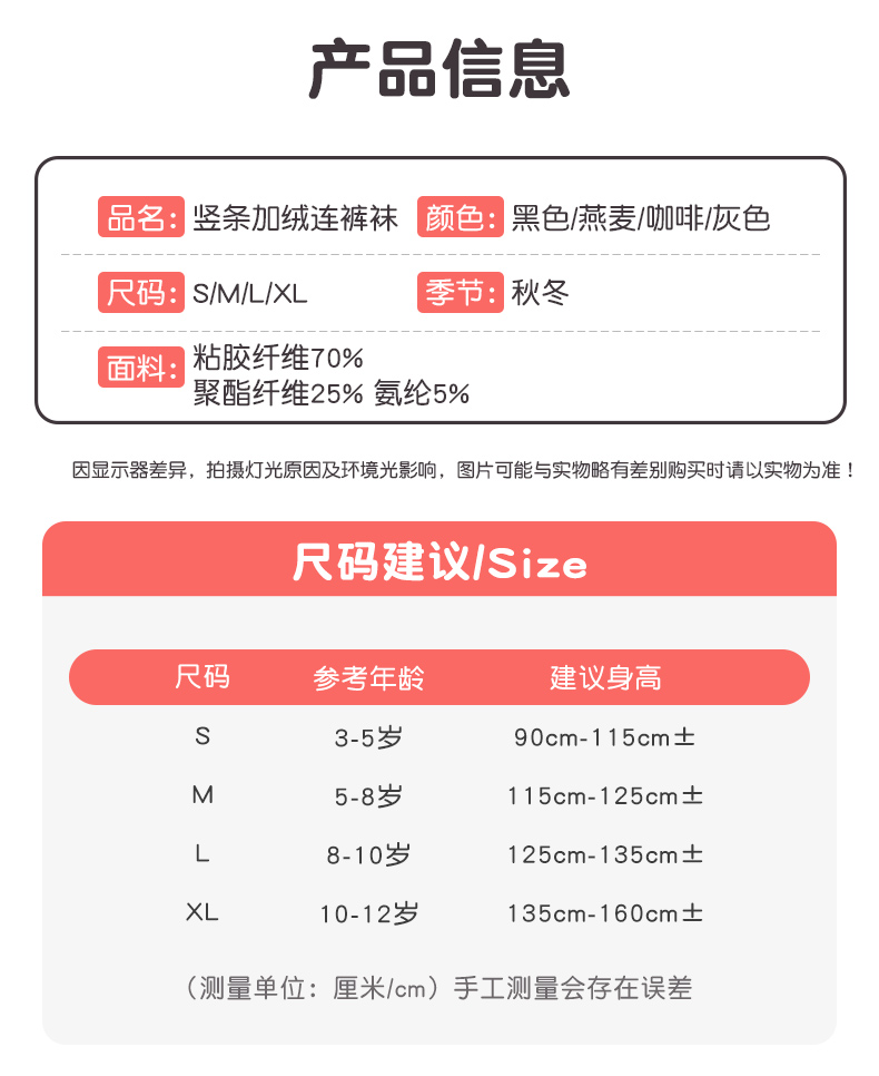 商品名称:柠檬舒品Lemonsox秋冬季新款儿童加绒加厚连裤袜子女童女宝舒适亲肤保暖打底裤子1条装