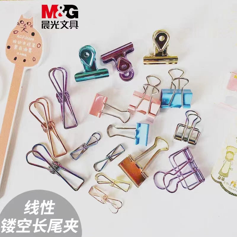 晨光文具袋装随机镂空彩夹金属燕尾夹可爱凤尾夹手帐办公试卷夹学生成人儿童文具套组