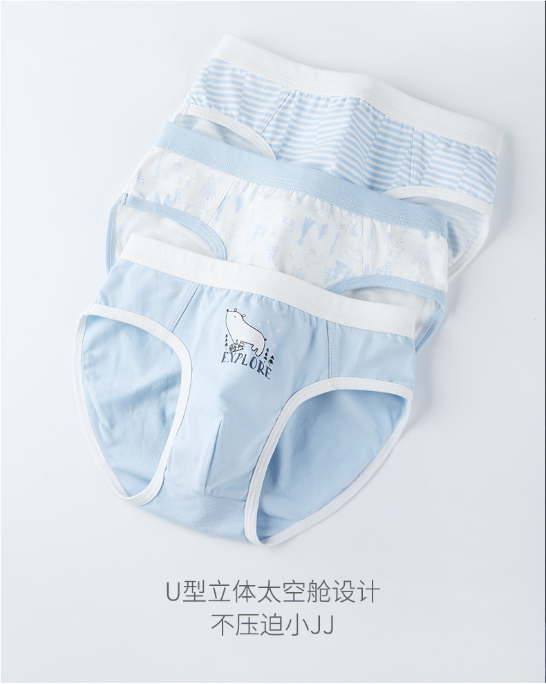 彩桥儿童内裤男纯棉裆中大童裤头3-15岁男孩短裤裤衩三角男童内裤3条装