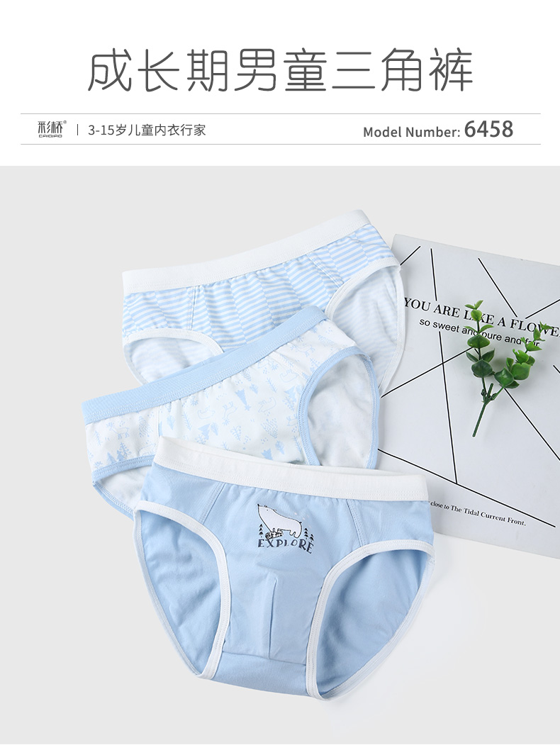 商品名称:彩桥儿童内裤男纯棉裆中大童裤头3-15岁男孩短裤裤衩三角男童内裤3条装