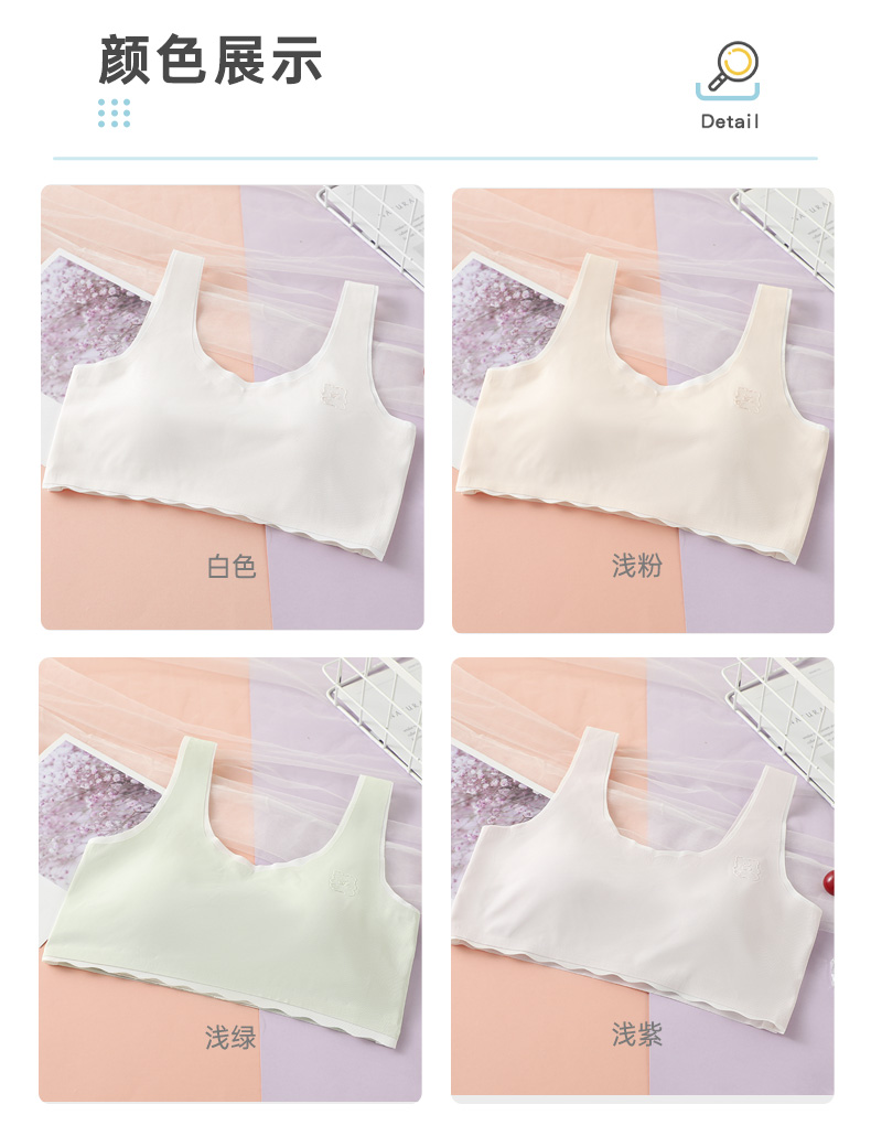 彩桥少女内衣初中生高中学生女大童发育期青春期无痕小背心青少年文胸单件