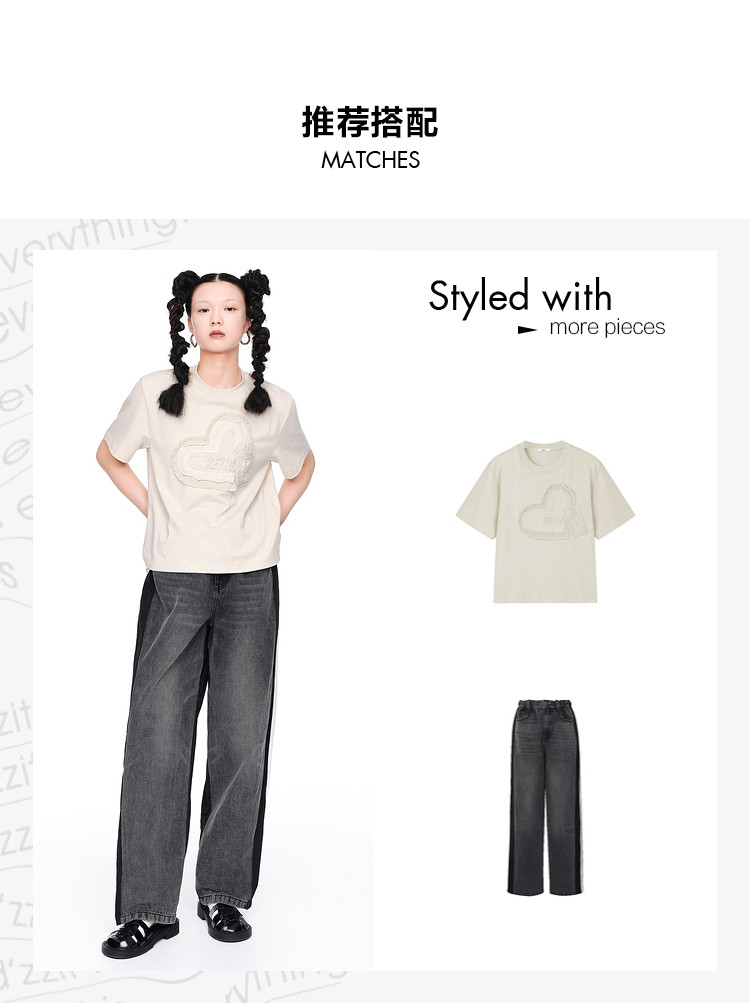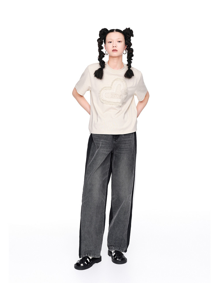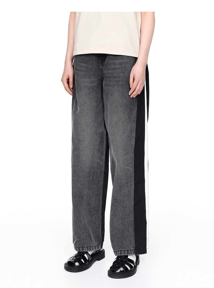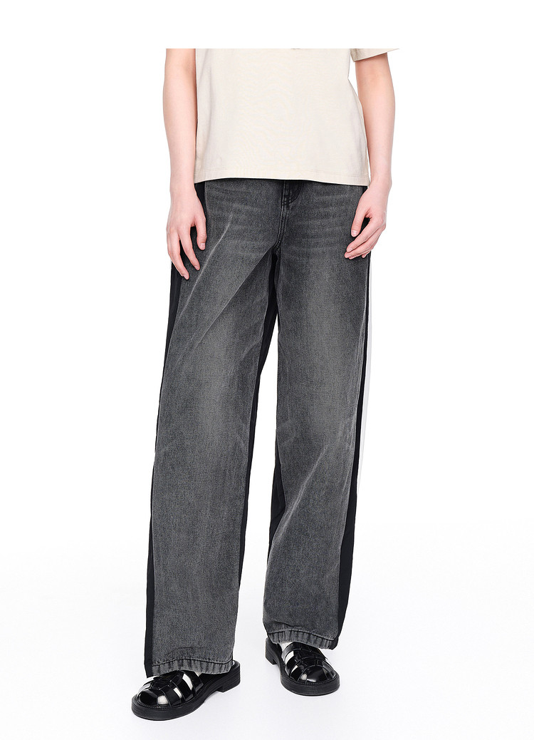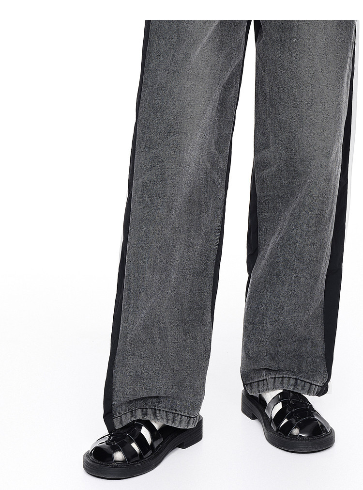地素春秋季宽松阔腿直筒牛仔拼接长裤(尺码偏大) 204363