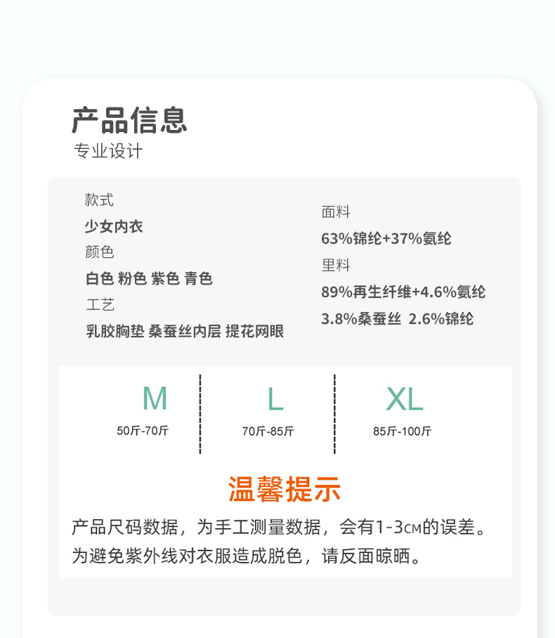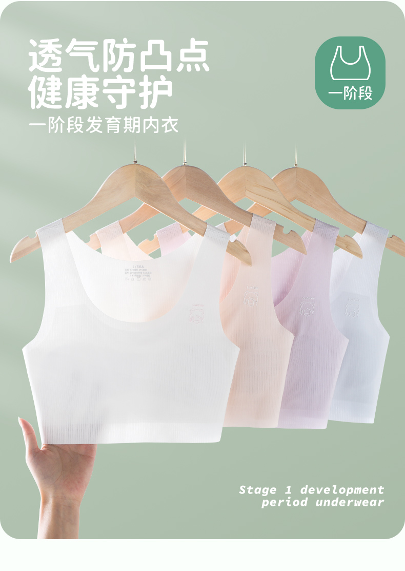 商品名称:彩桥【一阶段】学生发育期薄款无痕防凸点背心少女内衣文胸女童背心单件