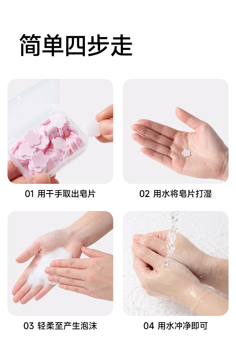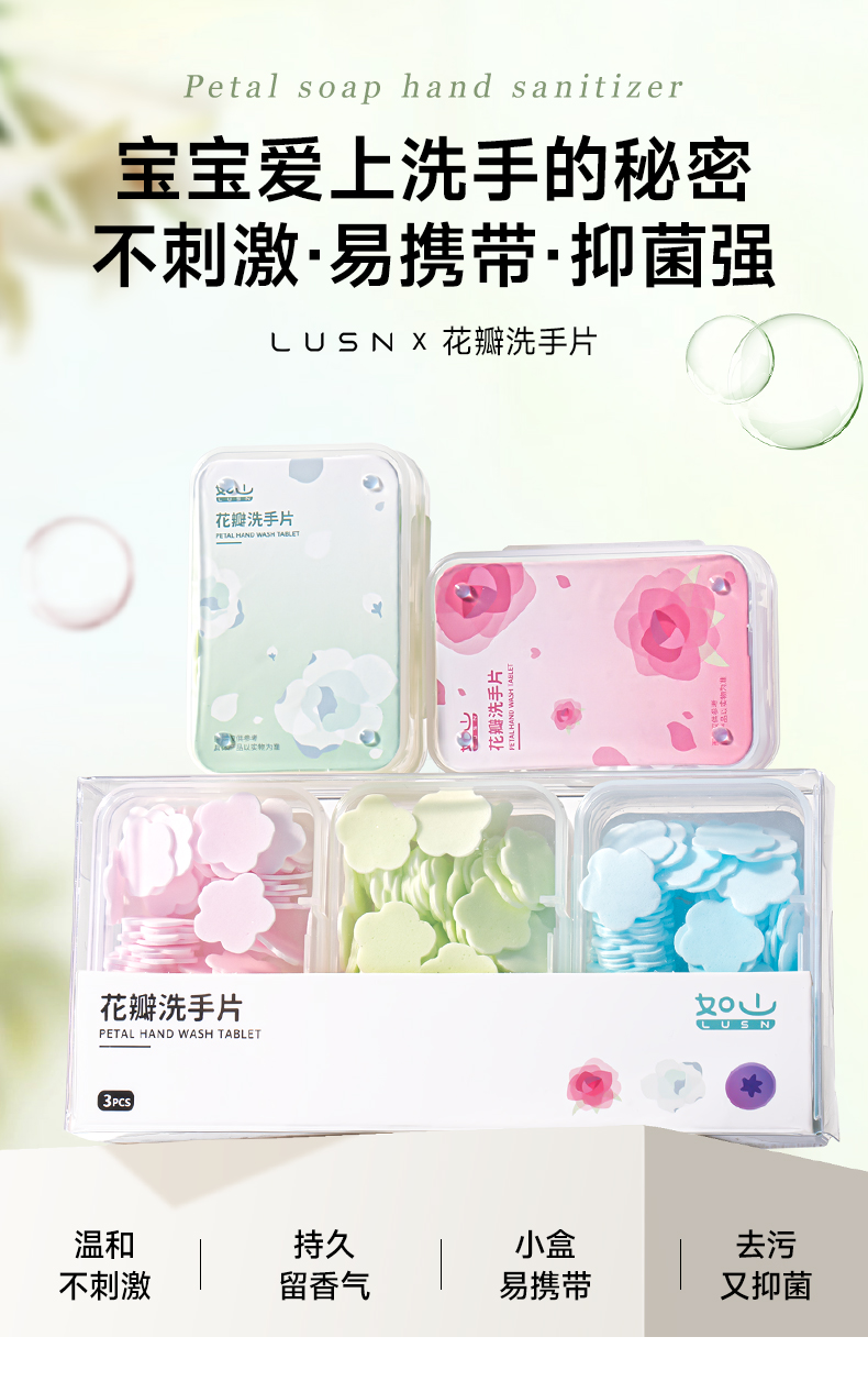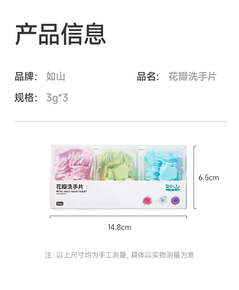 商品名称:如山儿童便携香皂片花瓣洗手香皂肥皂小片幼儿园洗手液洗手片盒装