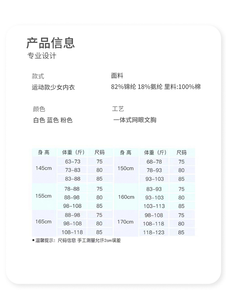 商品名称:彩桥少女文胸高中生少女内衣初中生运动小背心女学生内衣发育期青少年乳罩单件