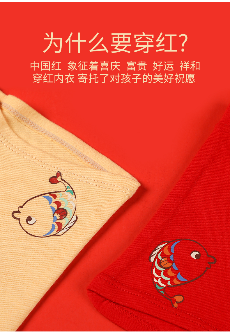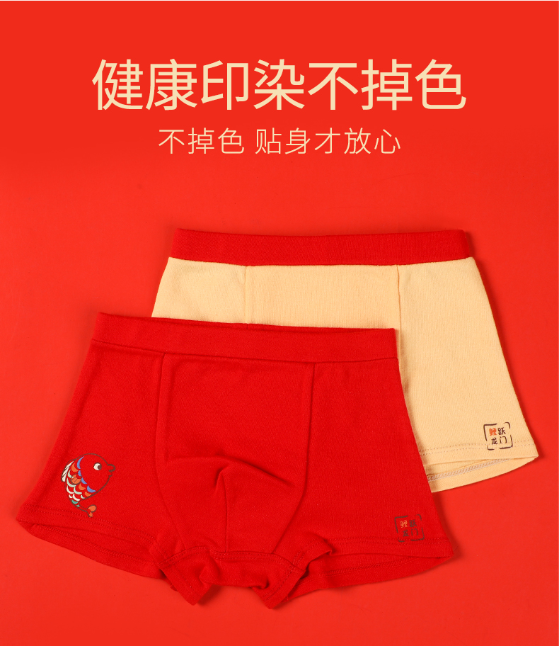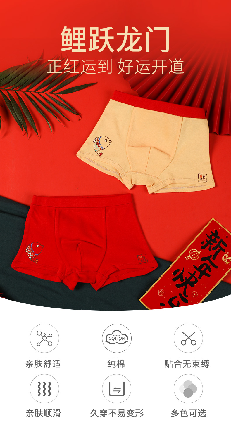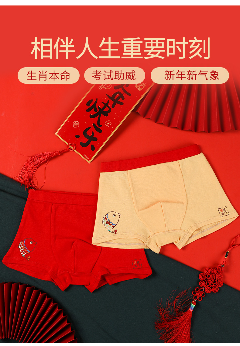 商品名称:彩桥【鸿运当头】新年男童本命年红色内裤儿童纯棉平角裤男孩鸿运四角短裤2条装