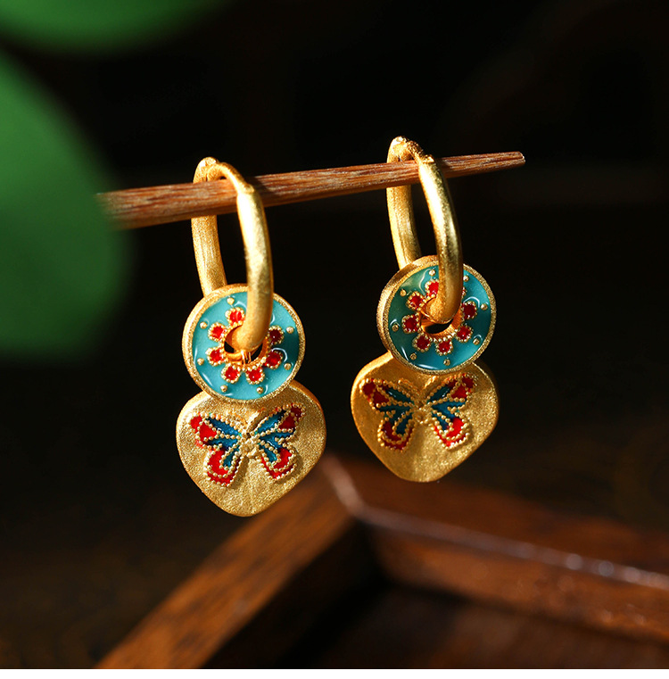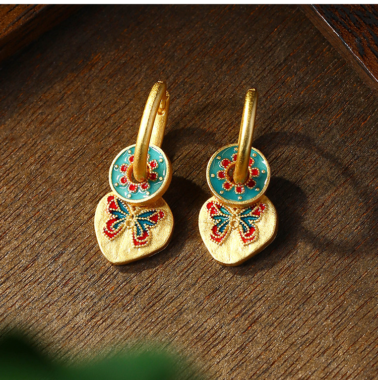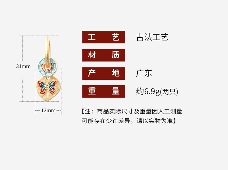 商品名称:彤彤兔 新中式复古珐琅滴油蝴蝶耳环高级小众百搭气质时尚中古耳飾