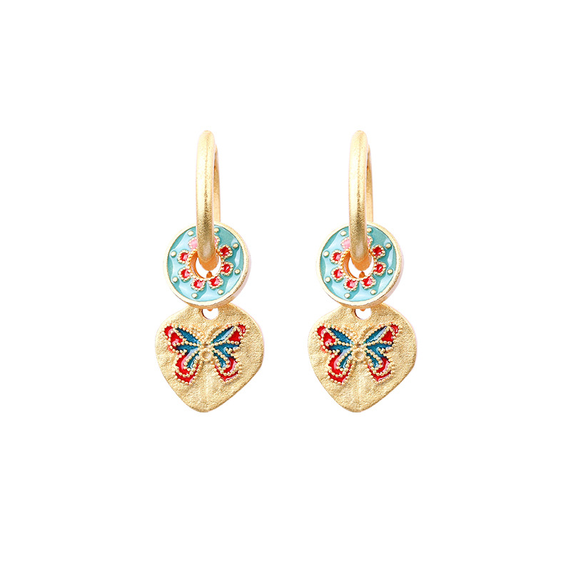 彤彤兔 新中式复古珐琅滴油蝴蝶耳环高级小众百搭气质时尚中古耳飾