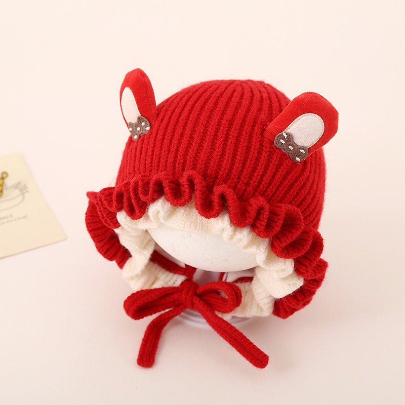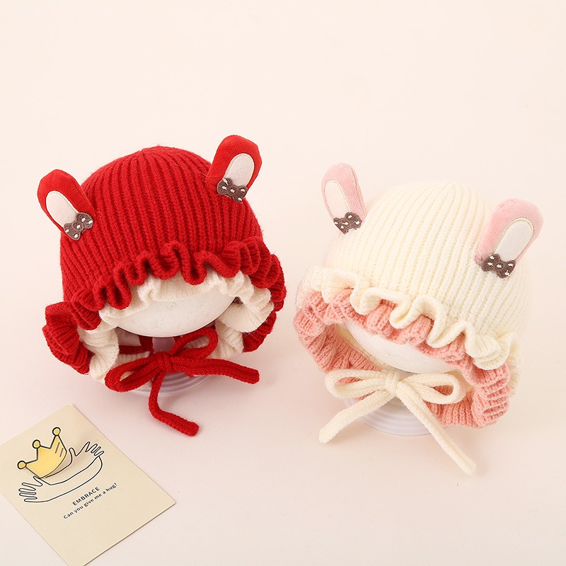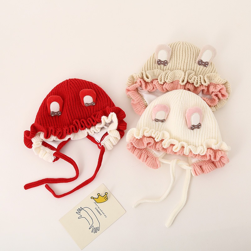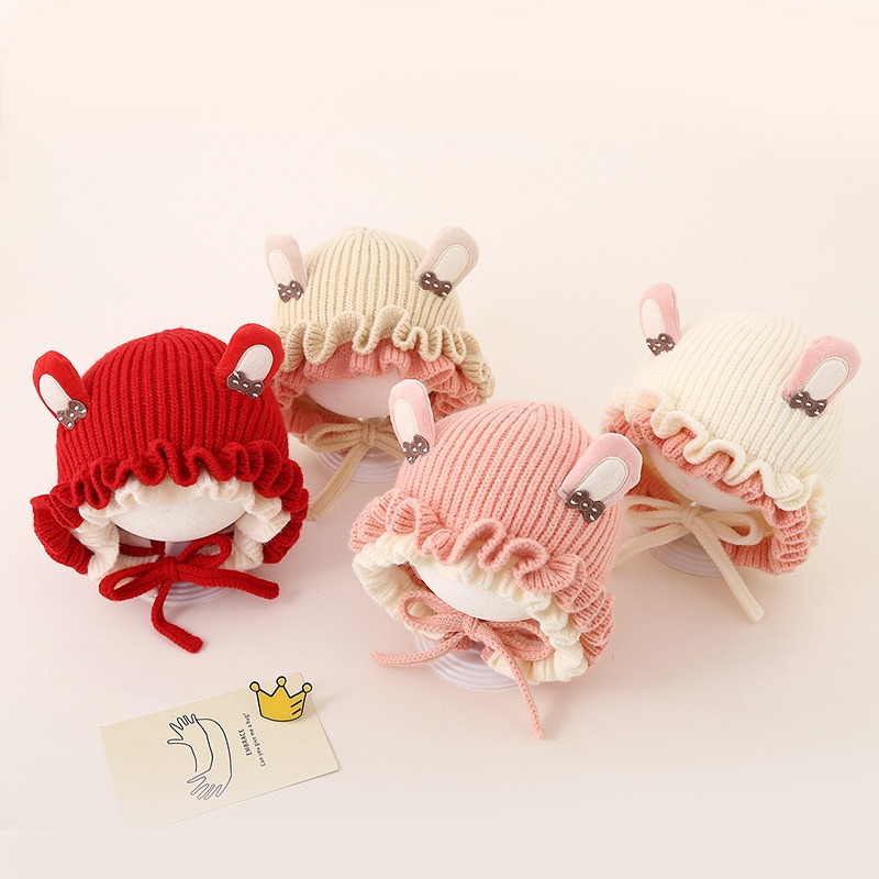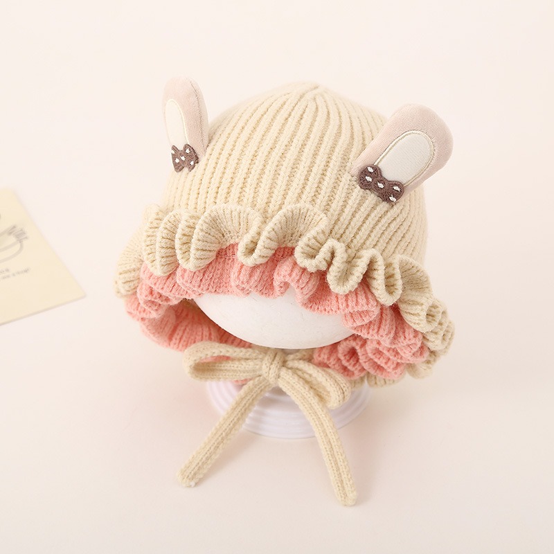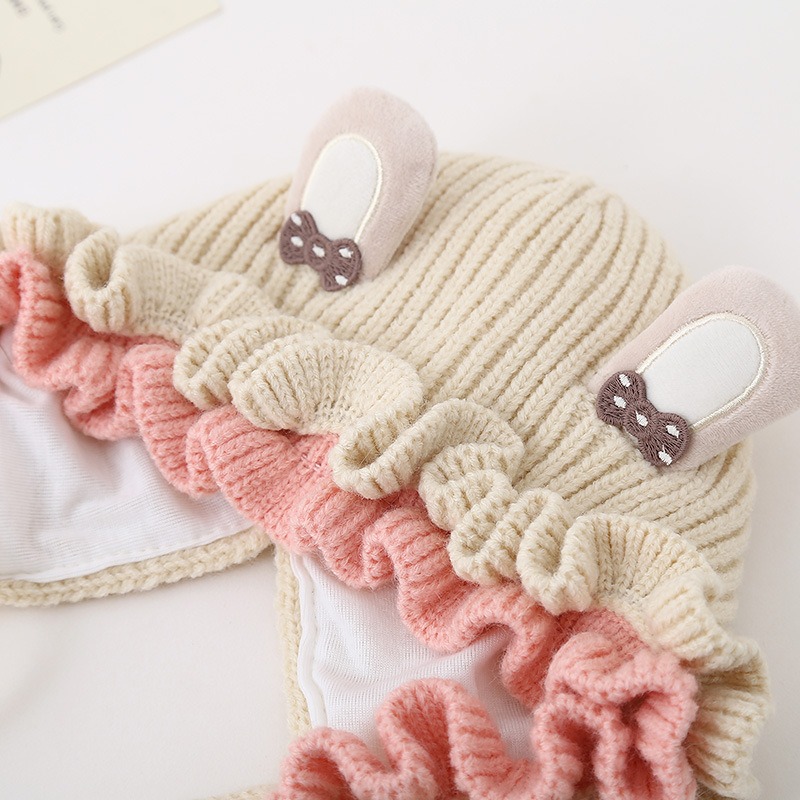 商品名称:哆宝时代2024兔耳朵儿童毛线帽冬季户外时尚波浪边加厚保暖婴幼儿针织帽子