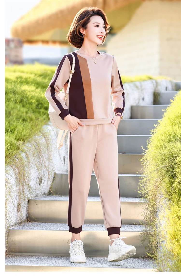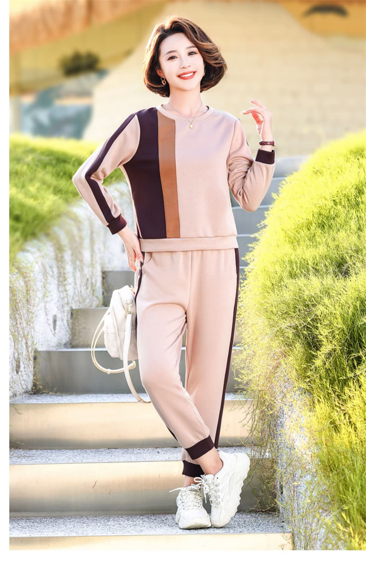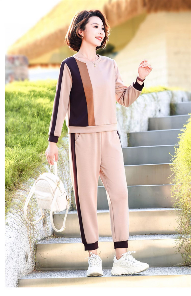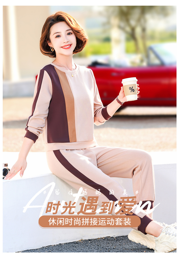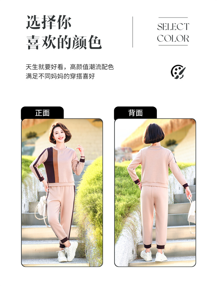 商品名称:靓婆婆中年妈妈秋装运动两件套装2024新款洋气上衣中老年女时尚休闲卫衣