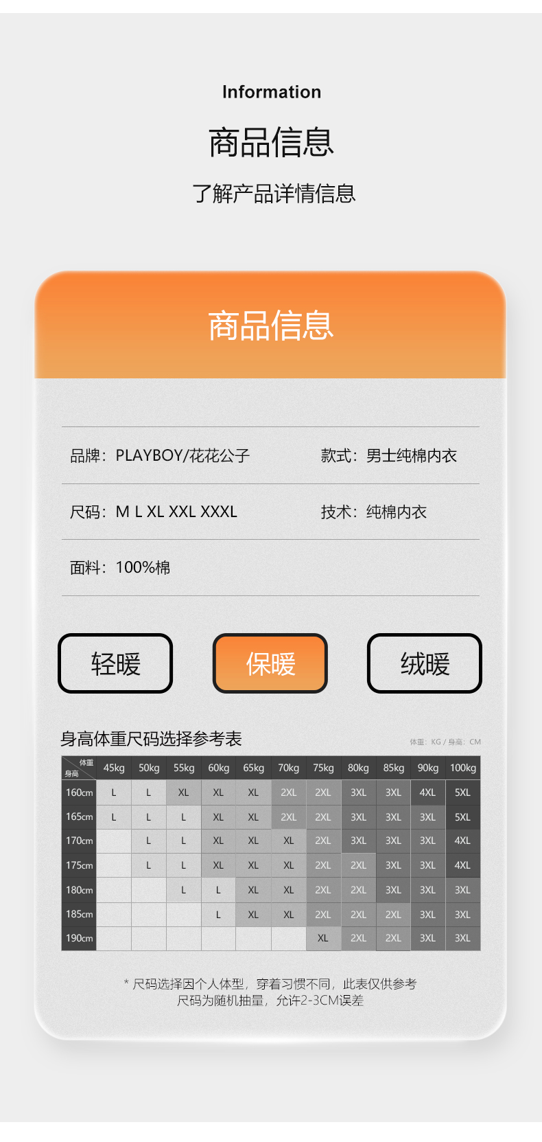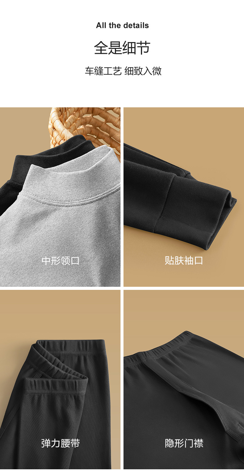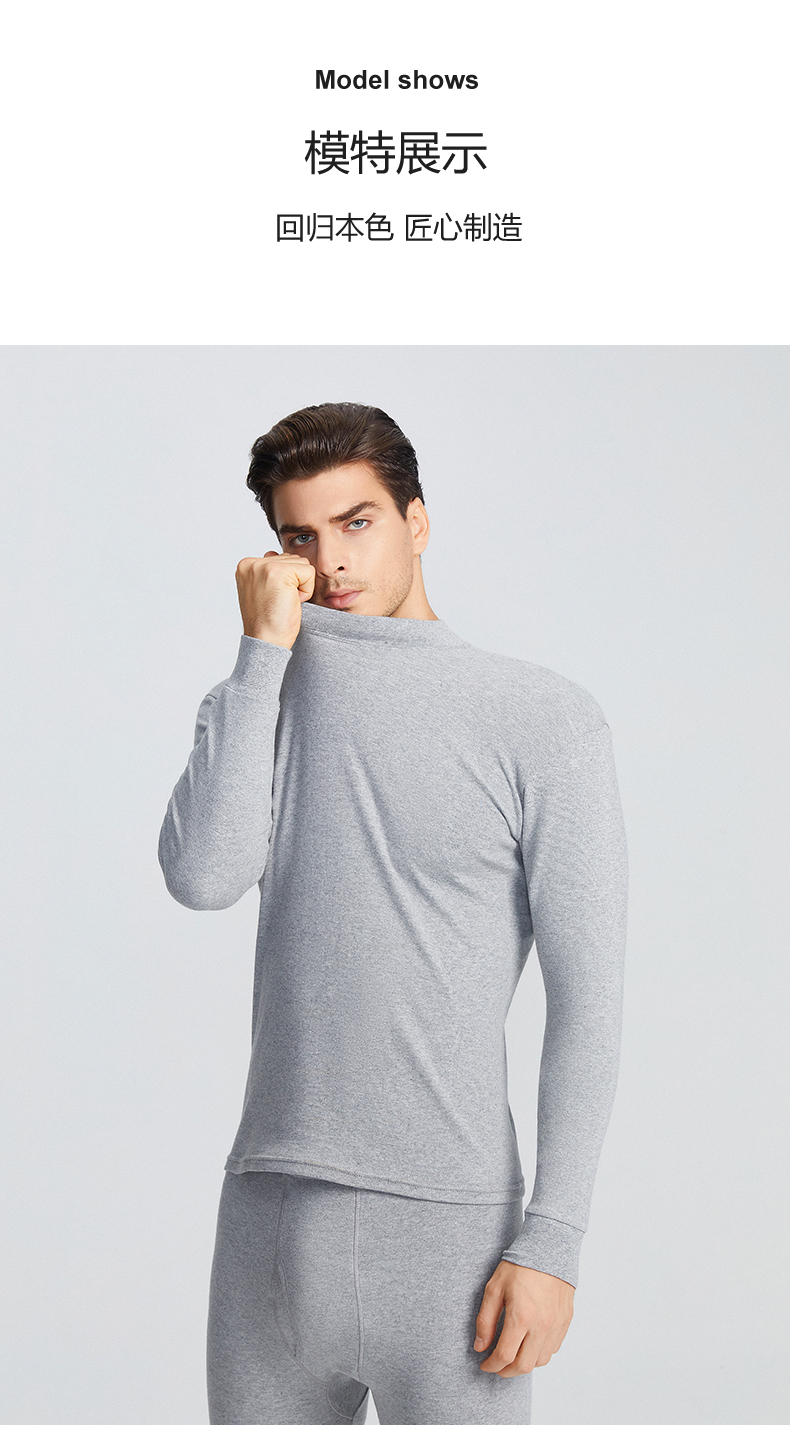 商品名称:【品牌特供】花花公子保暖内衣男士纯棉青少年秋衣秋裤套装中高领全棉毛衫打底长裤子