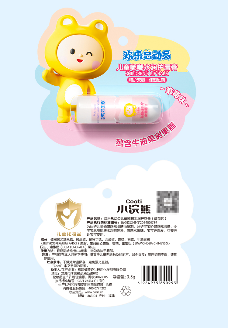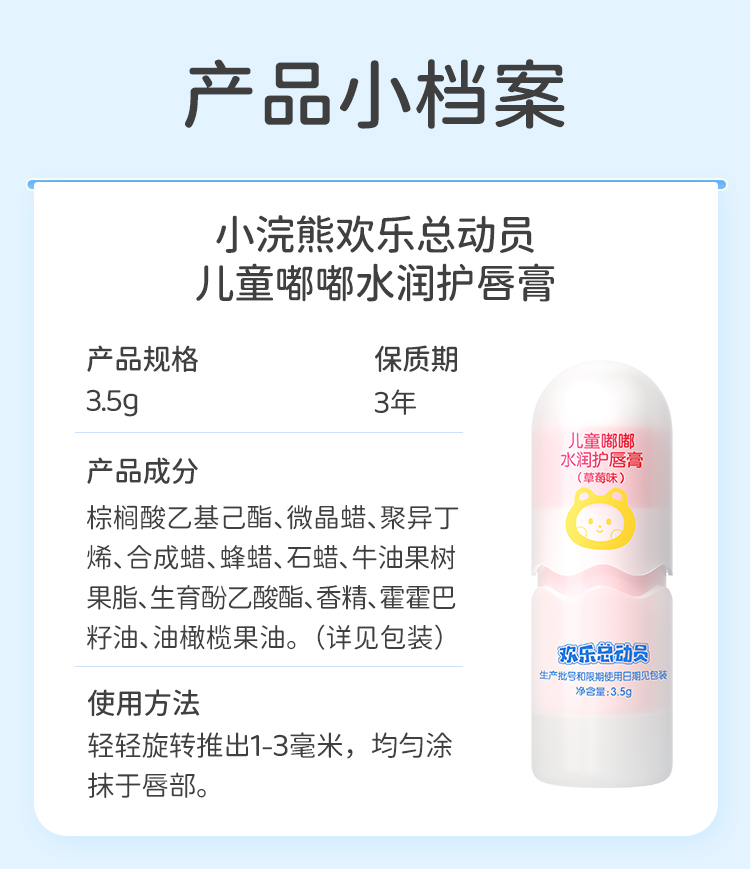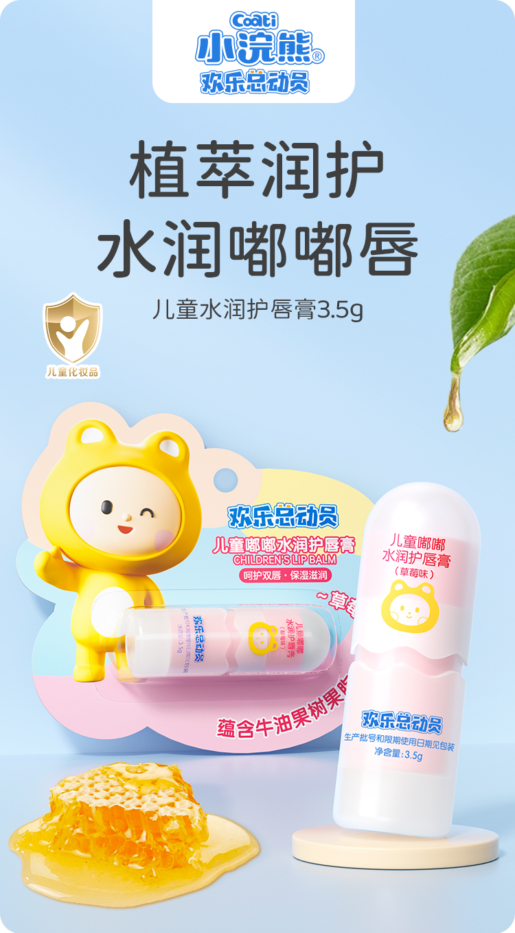 商品名称:小浣熊儿童润唇膏3-6-12岁宝宝嘟嘟水润保湿植萃果油护唇膏正品3.5g