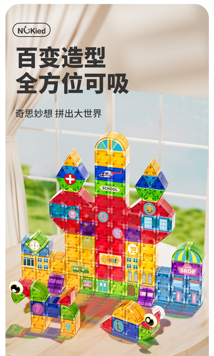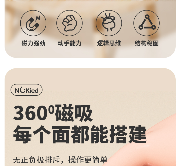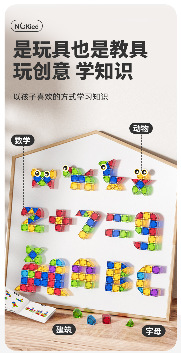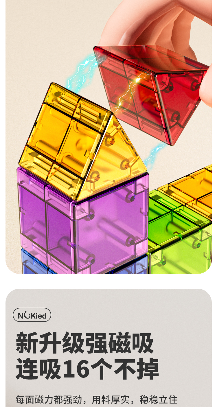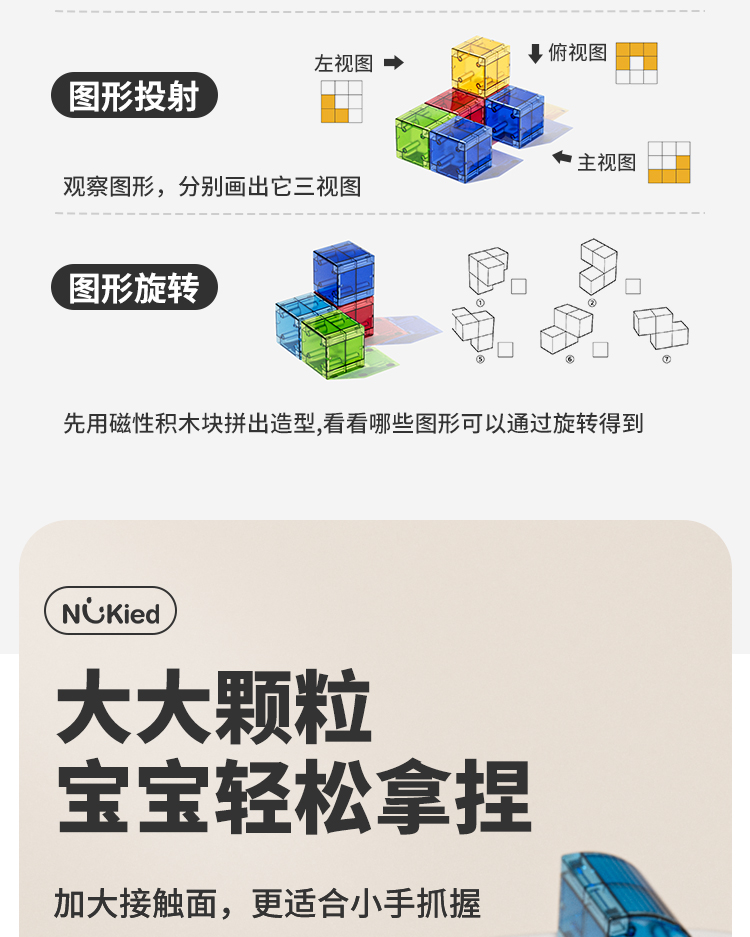 商品名称:纽奇 儿童益智磁力方块积木立体几何大颗粒玩具男女孩