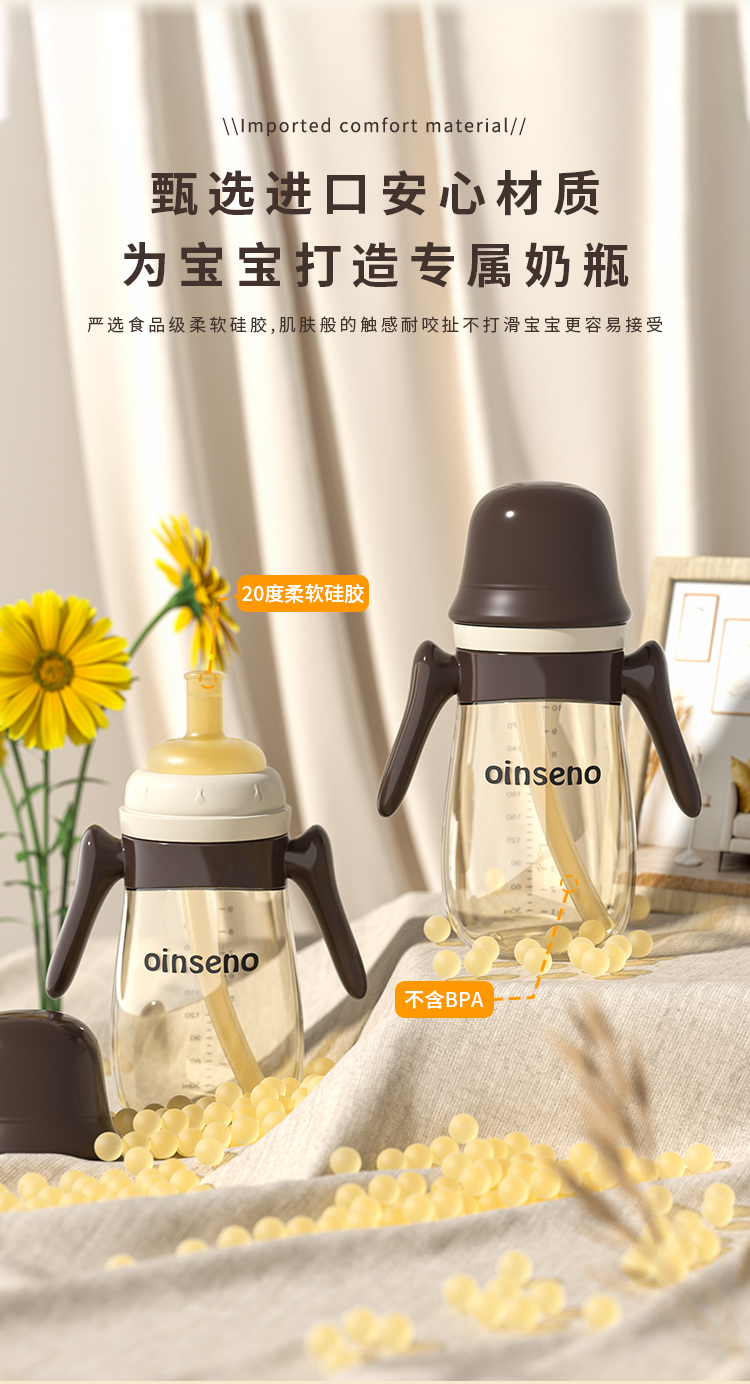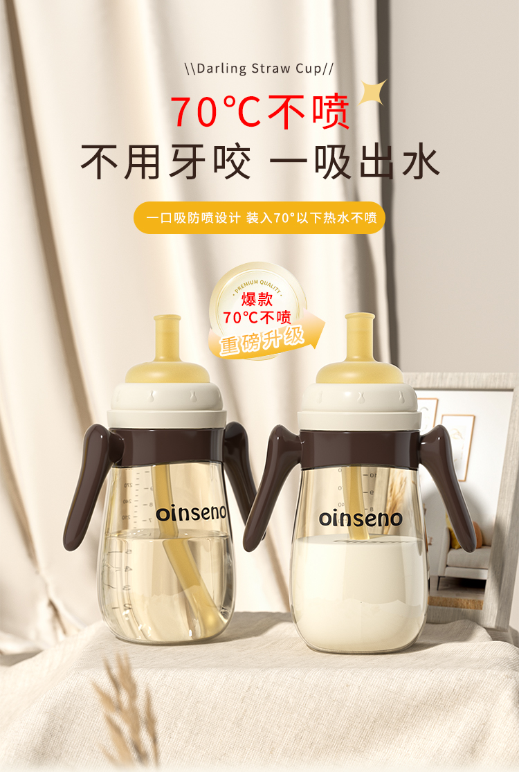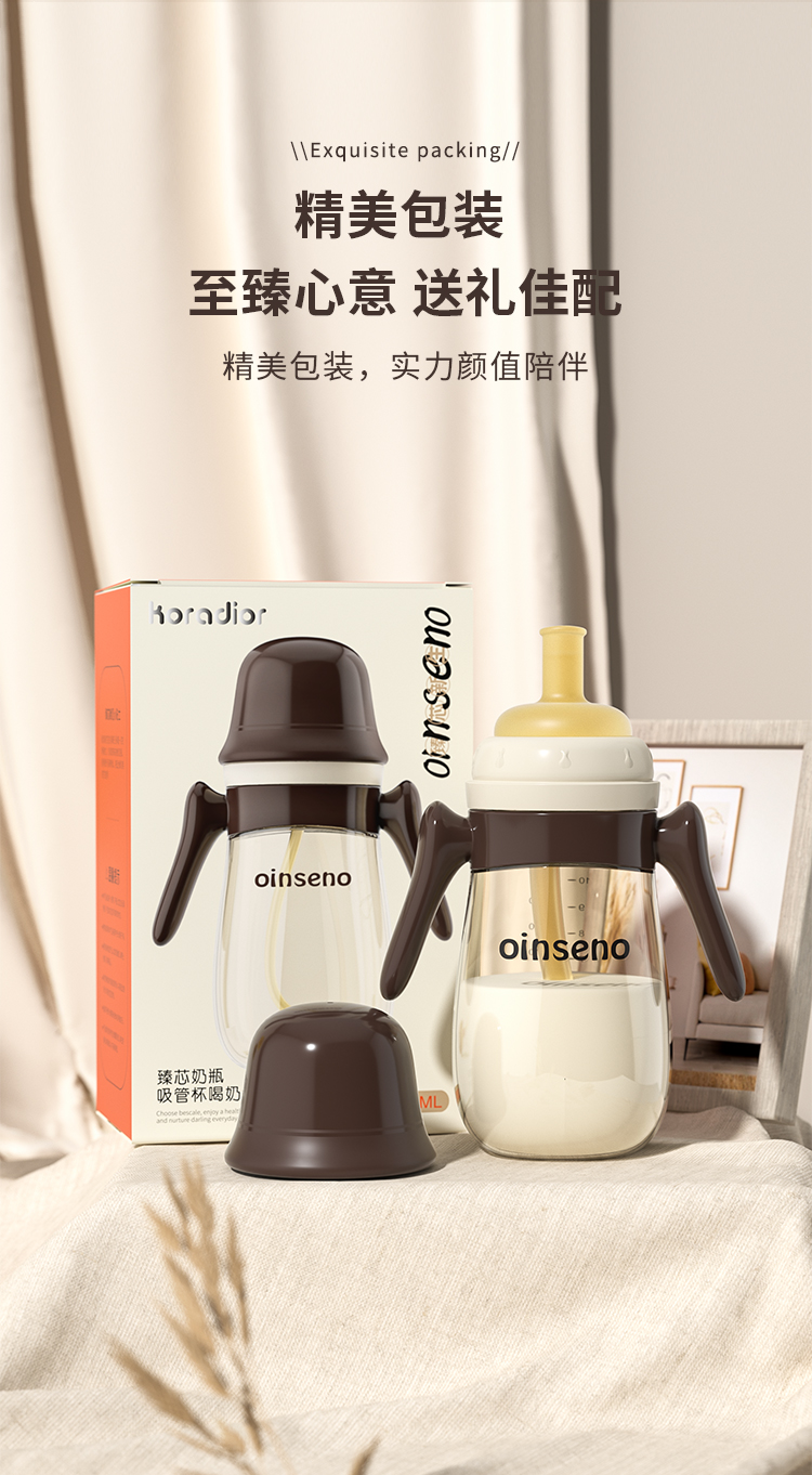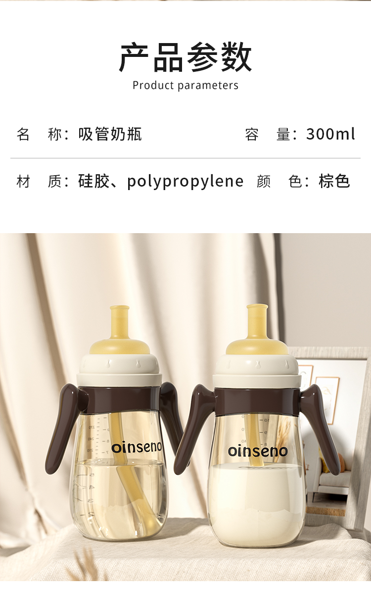 商品名称:【品牌直降】爱菲儿-进口材质 宽口径护齿吸嘴奶瓶婴儿吸管杯鸭嘴奶瓶学饮杯300ml