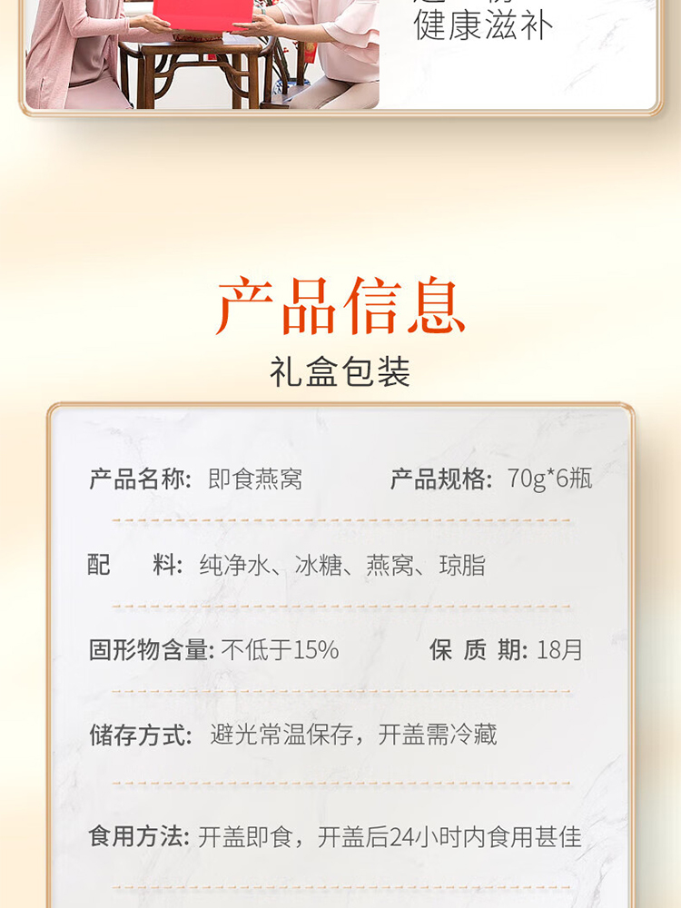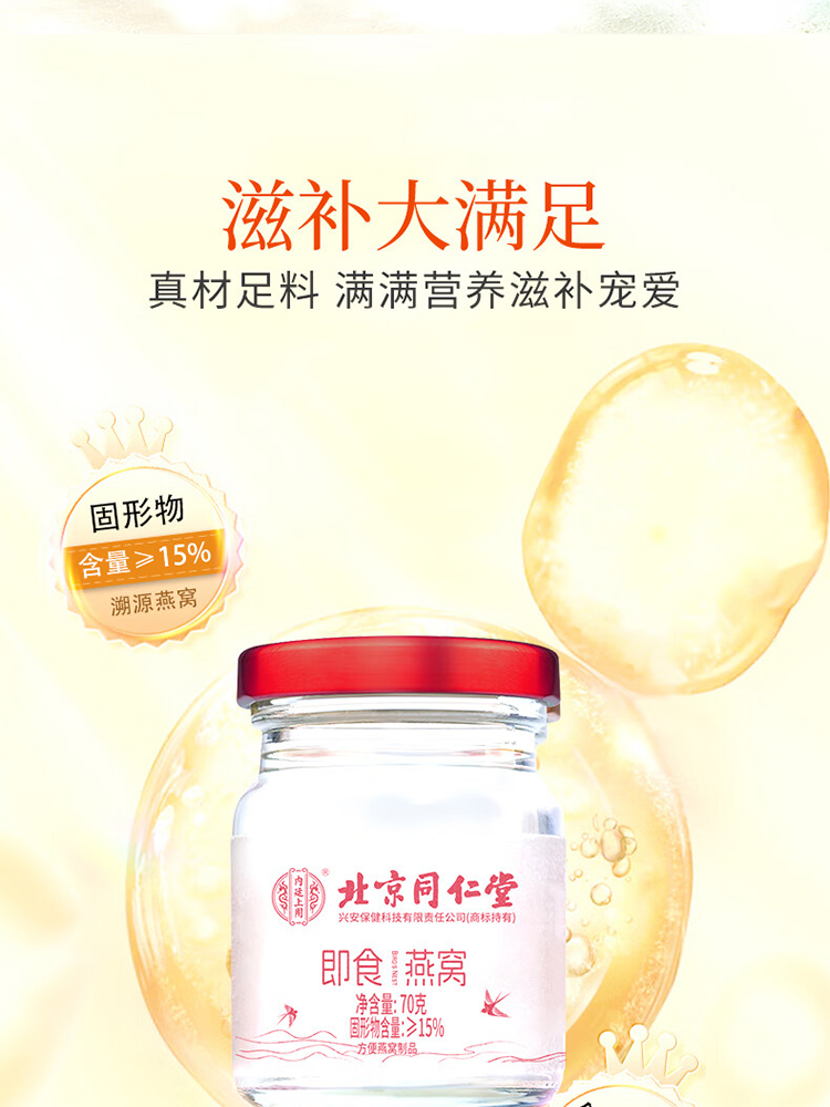商品名称:北京同仁堂燕窝即食燕窝70g*6瓶/盒 礼盒装孕妇冰糖燕窝礼盒营养品 送长辈礼物0脂肪