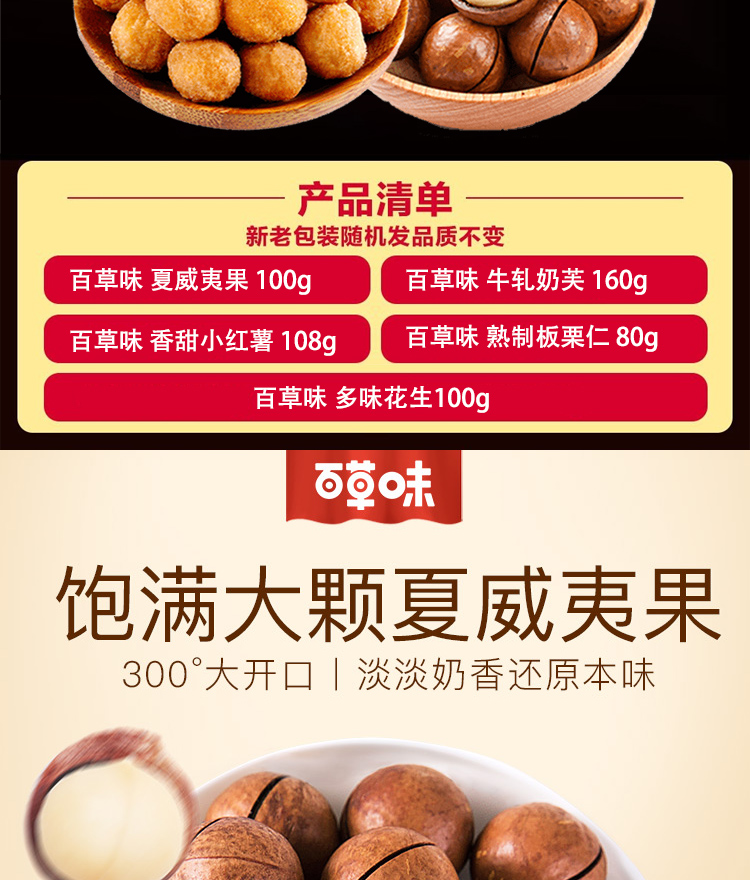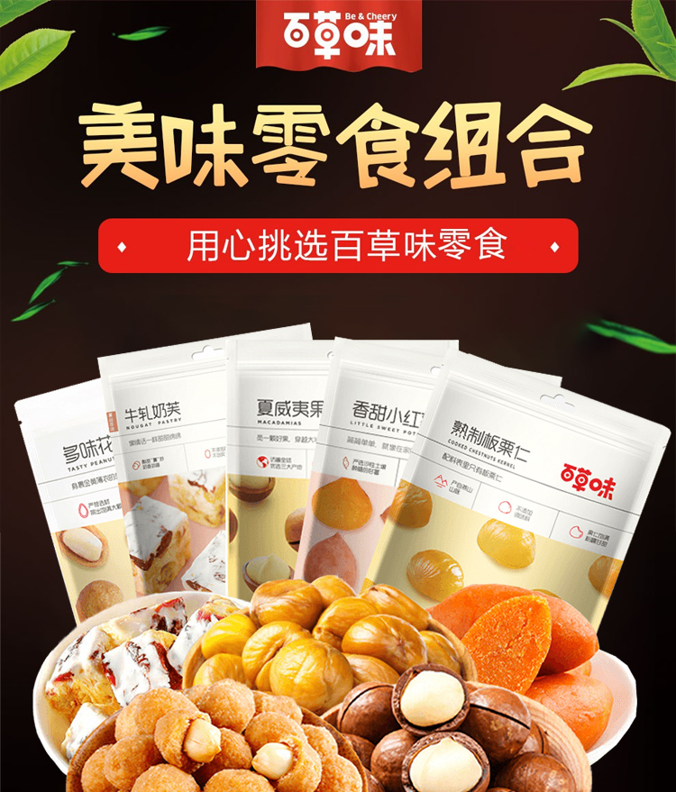 商品名称:百草味零食礼包548g夏威夷果奶芙红薯板栗仁零食大礼包网红下午茶休闲充饥夜宵
