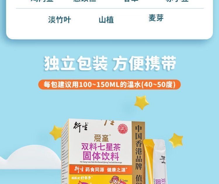 商品名称:【活动】国行衍生爱童双料七星茶冲剂200g(10g*20包)