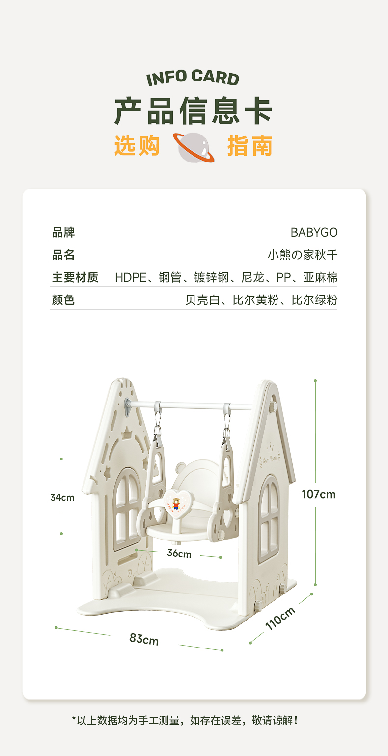 商品名称:BABYGO儿童室内滑梯秋千家用游乐场多功能秋千滑梯组合儿童大型秋千